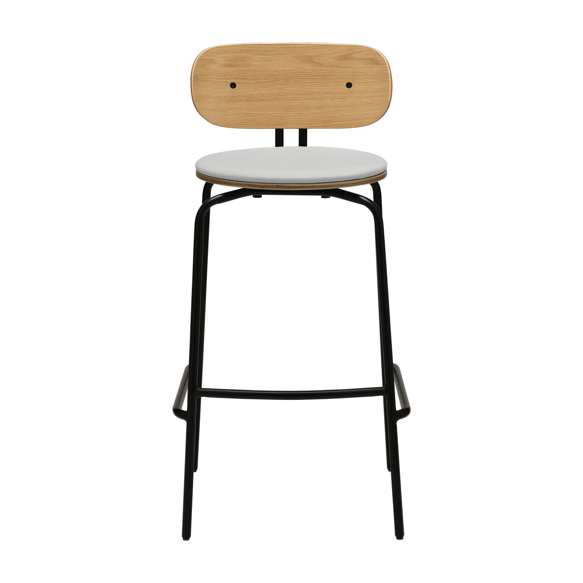 Hoker Curious has been designed for comfort and aesthetics - a simple, metal crossbar acts as a convenient footrest, providing a natural position while sitting and promoting long, free conversations.