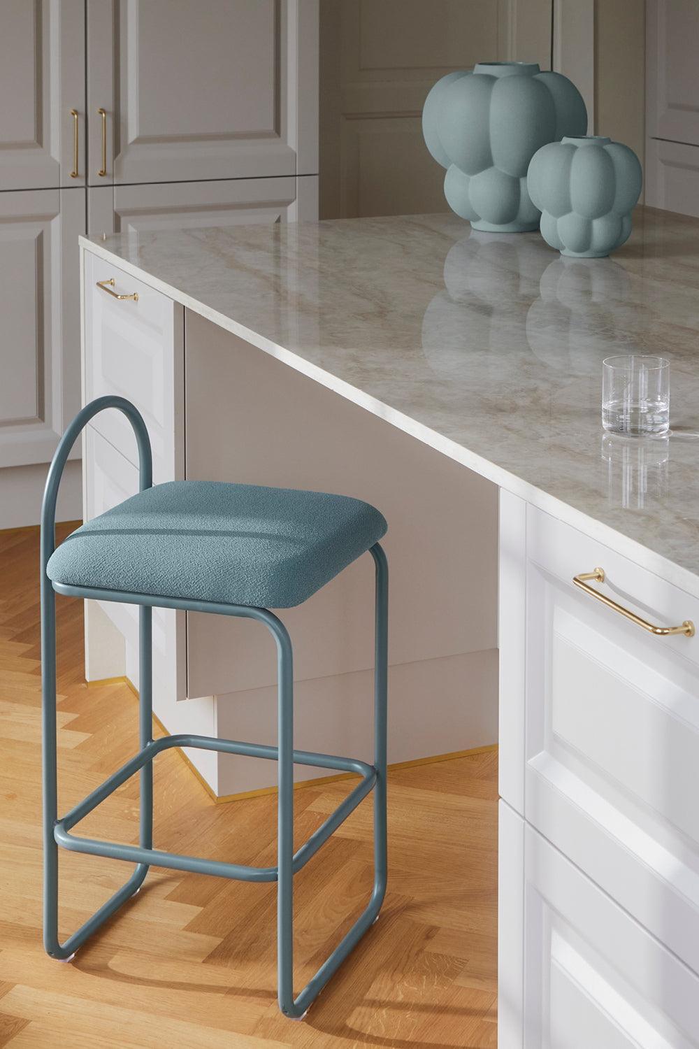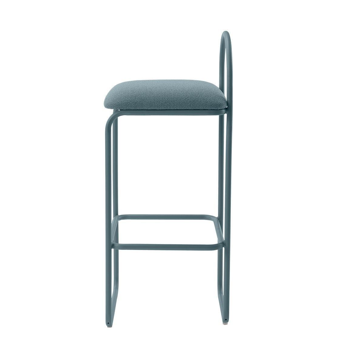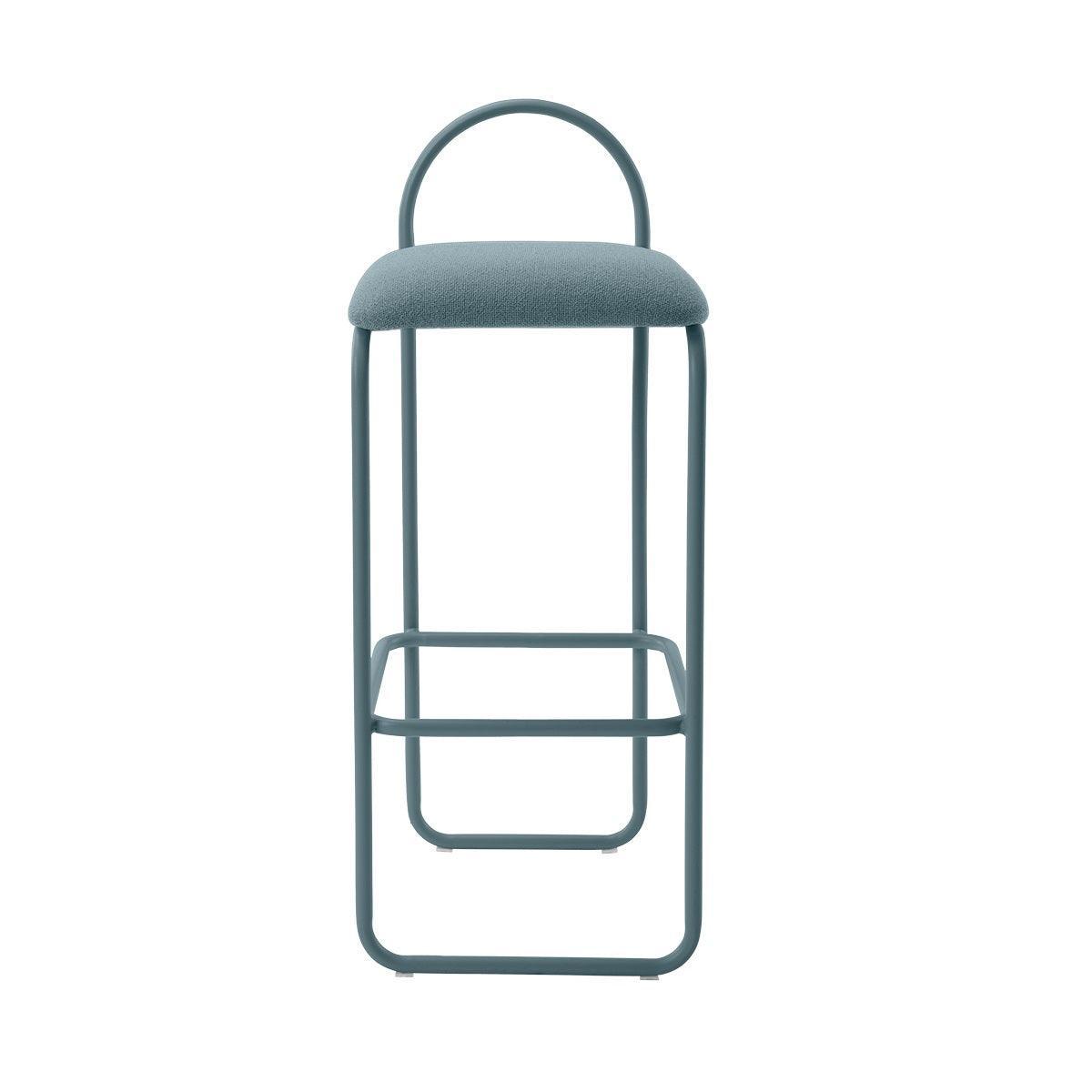 Angui is a beautiful collection that includes benches, chairs, bar stools, as well as shelves and mirrors in various sizes. The frames styled like industrial pipes and the modern color palette will enhance the character of the room. Embrace the minimalist form and enjoy the comfort of the Angui bar stool, whose seat is made with the addition of 2.5 recycled bottles. This unique bar stool is perfect for dining rooms, kitchens, or distinctive commercial spaces.