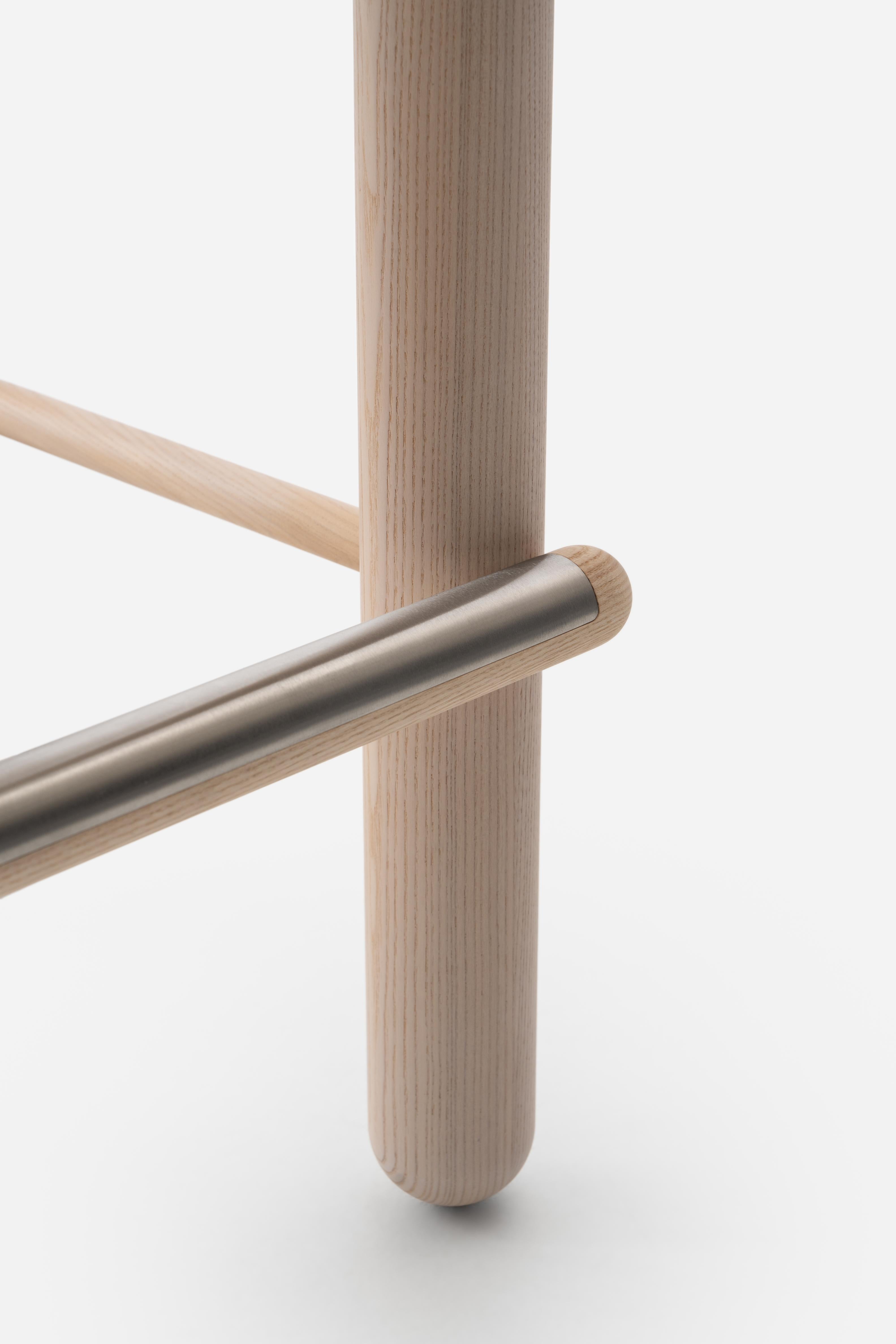 Designed by Kateryna Sokolova, the modern bar stool Flock CS2 is available in a wide range of premium fabrics and offers the option of upholstered or wooden legs. The legs can be finished in natural wood tones or painted in any color from the RAL palette, allowing for complete customization. The chair Flock CS2 is an extension of the existing Flock collection, which previously included lounge chairs and dining chairs, expanding the offering to include an elegant bar seat.