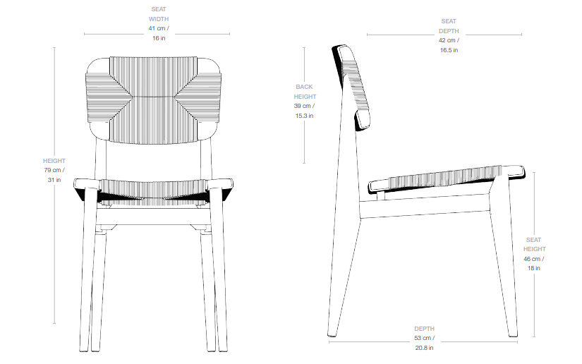 The characteristic, strongly defined legs contrast with the openwork structure of the seat, giving the chair a sense of delicacy while maintaining its solid construction. With balanced proportions and natural materials, the C-Chair fits perfectly in both classic and modern interiors — from dining rooms to commercial spaces.