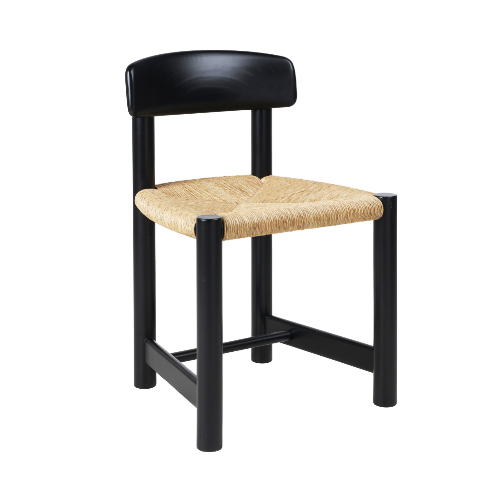 DAUMILLER chair in black pine wood with woven seat