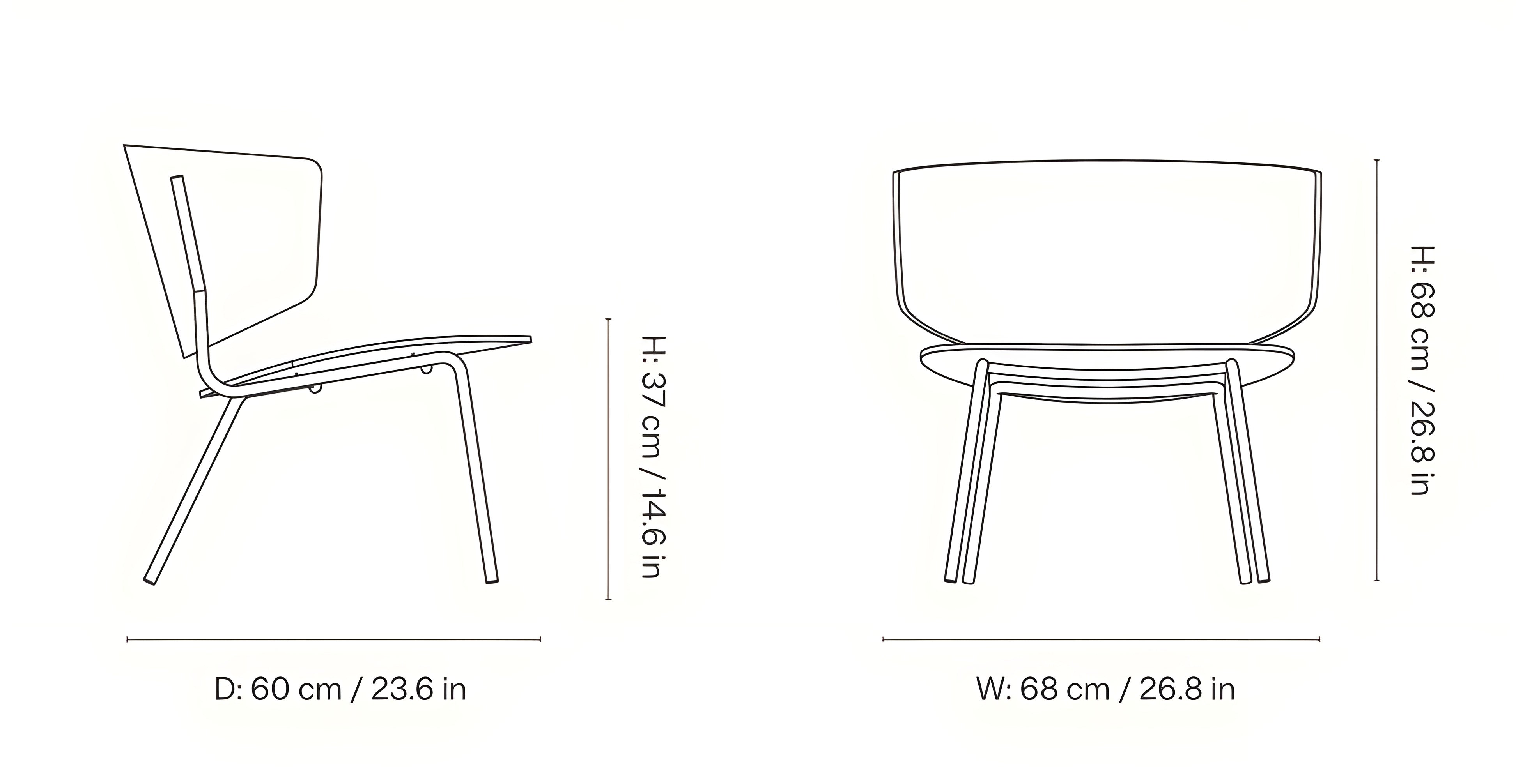 Herman lounge chair is a stylish extension of the popular Herman chair series. Its low design, based on a powder-coated steel frame, is complemented by a wide, oval seat and a subtly curved backrest that embraces the body, providing maximum comfort. Made from painted veneer of certified FSC™ wood, the chair combines a modern look with environmental responsibility.