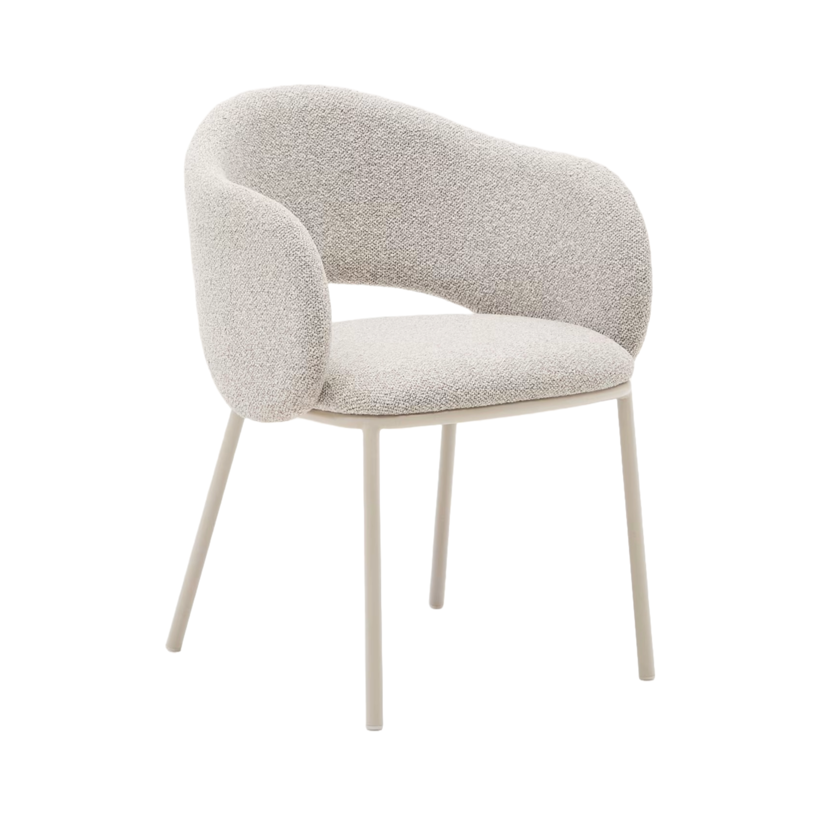 The Maina chair is a blend of elegance, comfort, and timeless design. Its shape, inspired by the aesthetics of the 1950s, is enhanced with contemporary details, making the upholstered Maina chair a perfect fit for modern interiors with a touch of retro. The beige chenille fabric with a distinct texture adds warmth, while the gentle lines and contoured backrest ensure top-level comfort.
