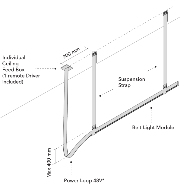 The lamp is installed using straps threaded through metal buckles, which serve as ceiling hooks. The adjustable length of the straps allows you to adapt the composition to various spatial arrangements. The power supply and control system are hidden inside the straps, ensuring a clean form and maximum aesthetics. Each light source can be controlled independently thanks to the built-in CASAMBI system, managed through a dedicated app. Belt is lighting that impresses with both its form and functionality.