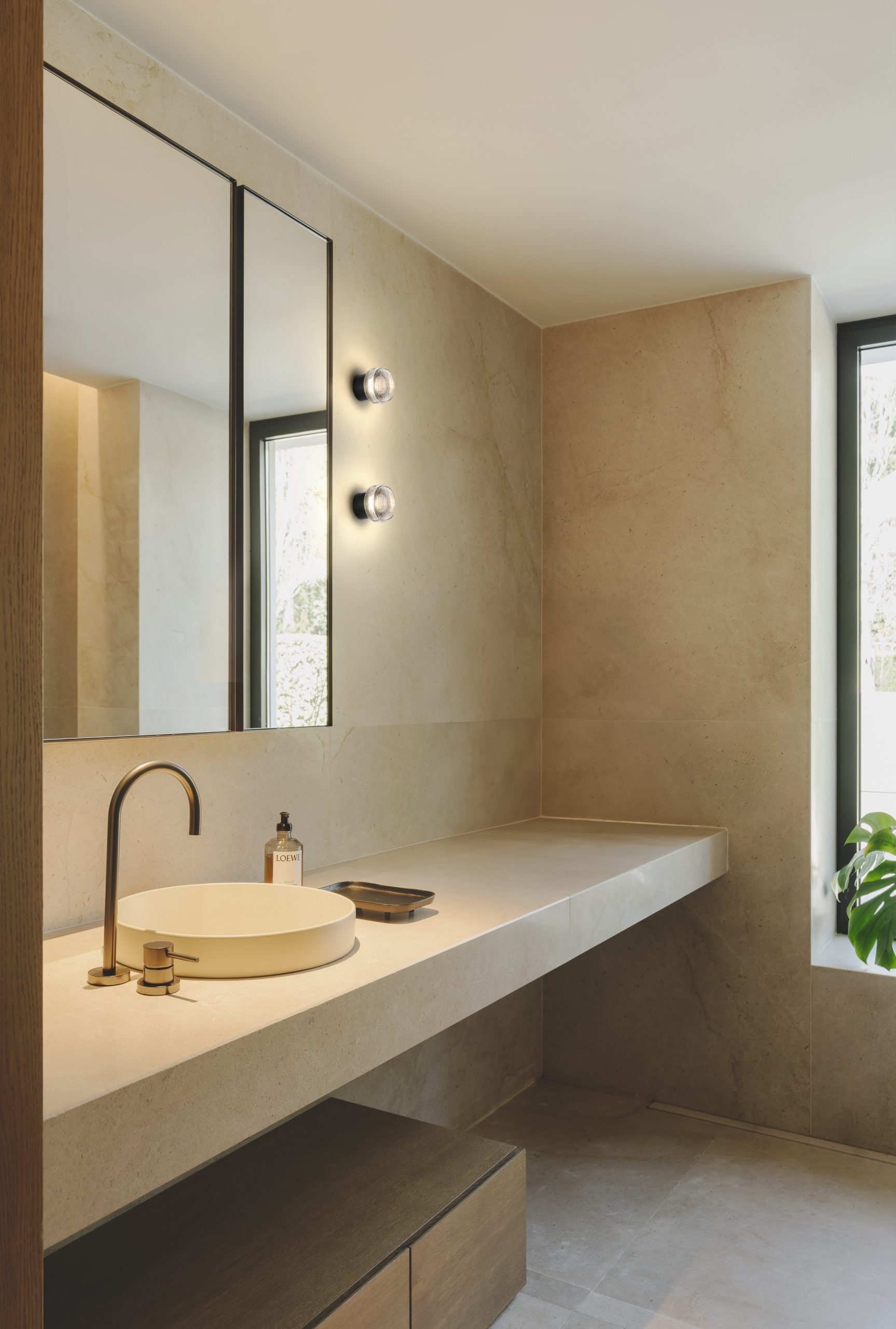 Each Roc lamp is equipped with a glare-reducing filter that obscures light (recommended for wall mounting). The aluminum and pressed glass construction ensures durability and a timeless appearance. This fixture combines organic aesthetics, a subtle play of light, and high-quality craftsmanship, bringing a soft, sensual illumination to the space.