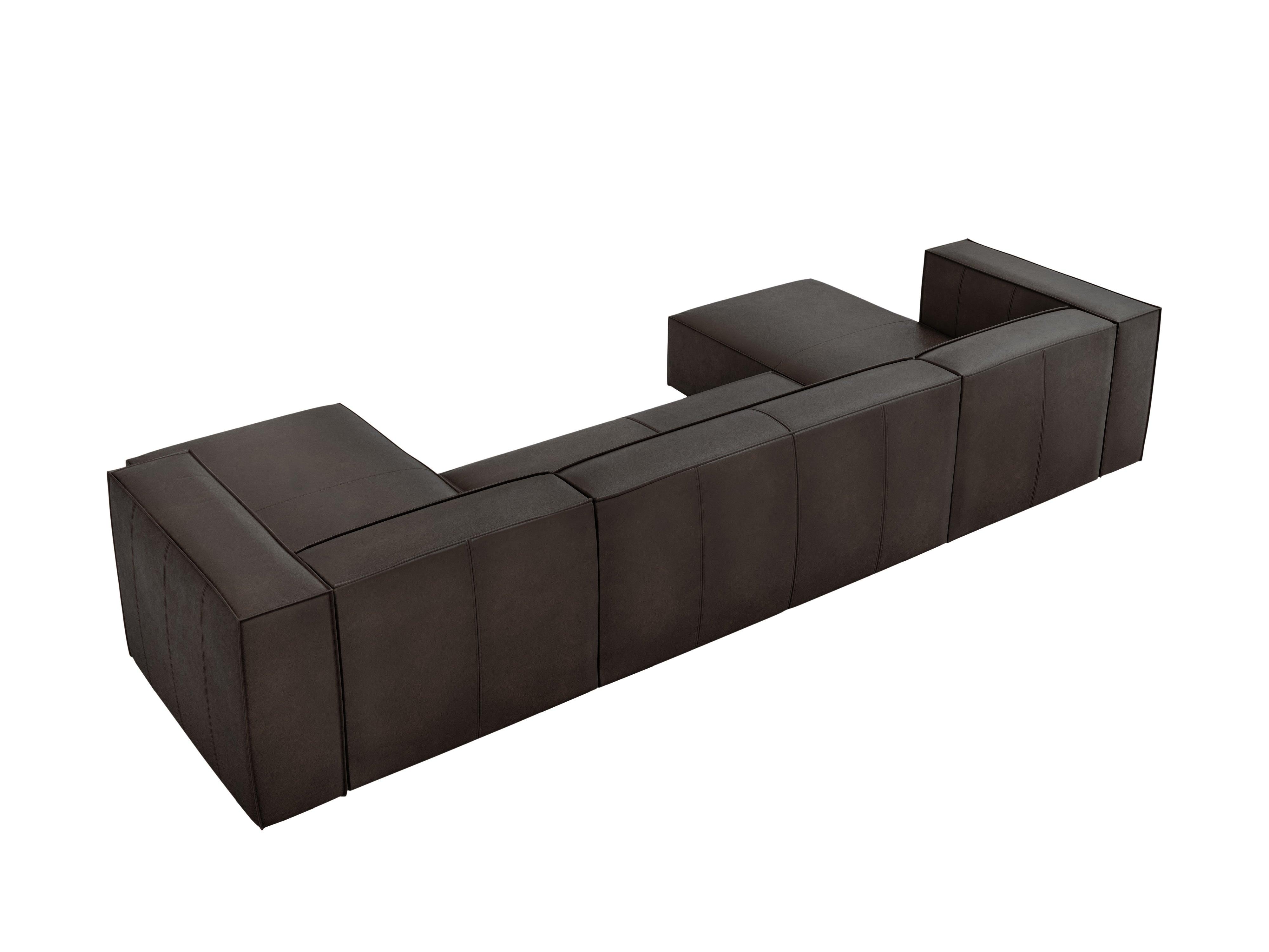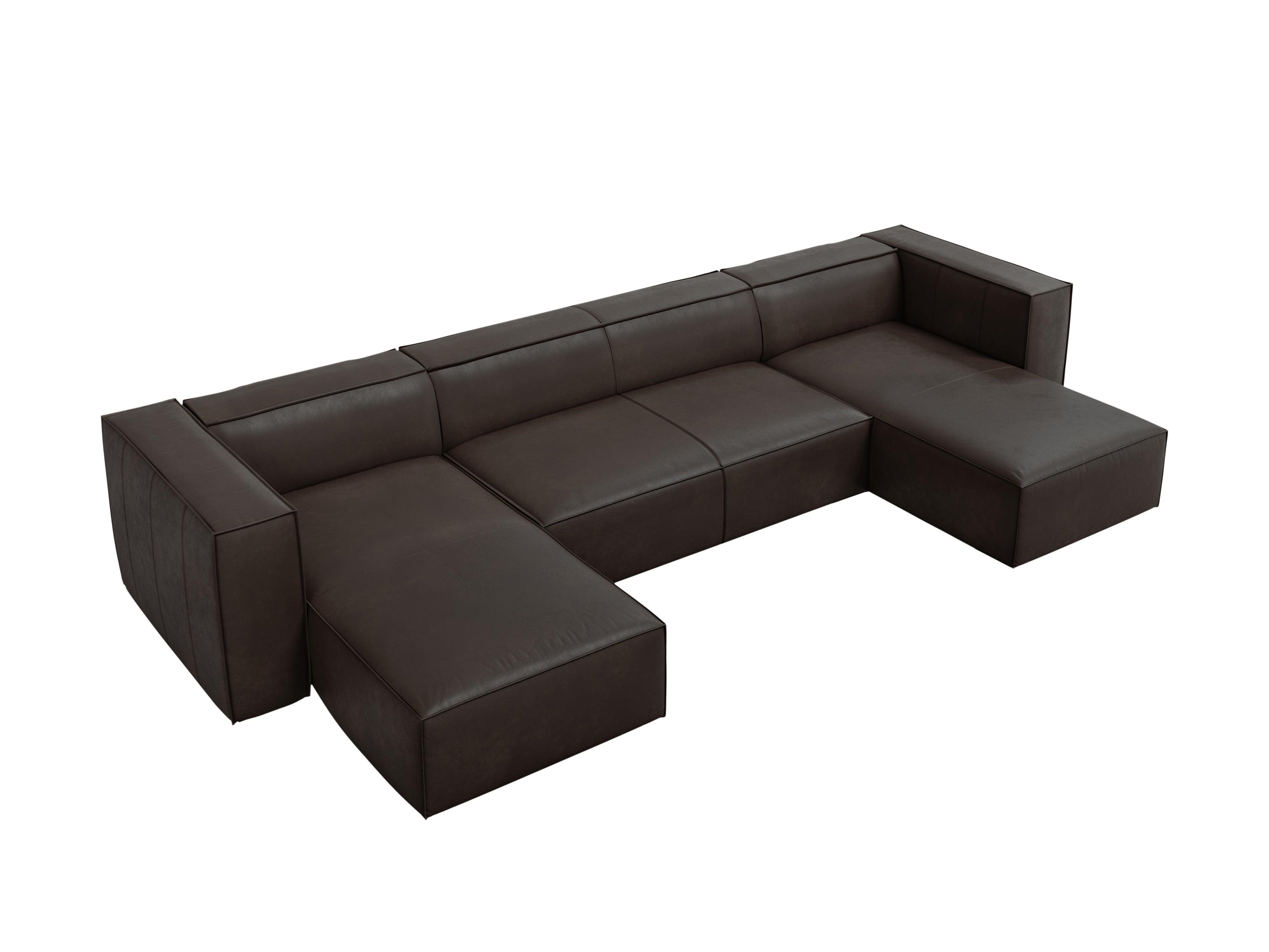 Leather corner sofa in the shape of a U Madame is the perfect combination of elegance and timeless form. The geometric, somewhat raw shape fits beautifully in modern classic interiors with a touch of modernity. Decorative stitching on the leather upholstery adds an extraordinary character to the whole piece. The wooden legs made of beech not only look beautiful but also provide a solid foundation.