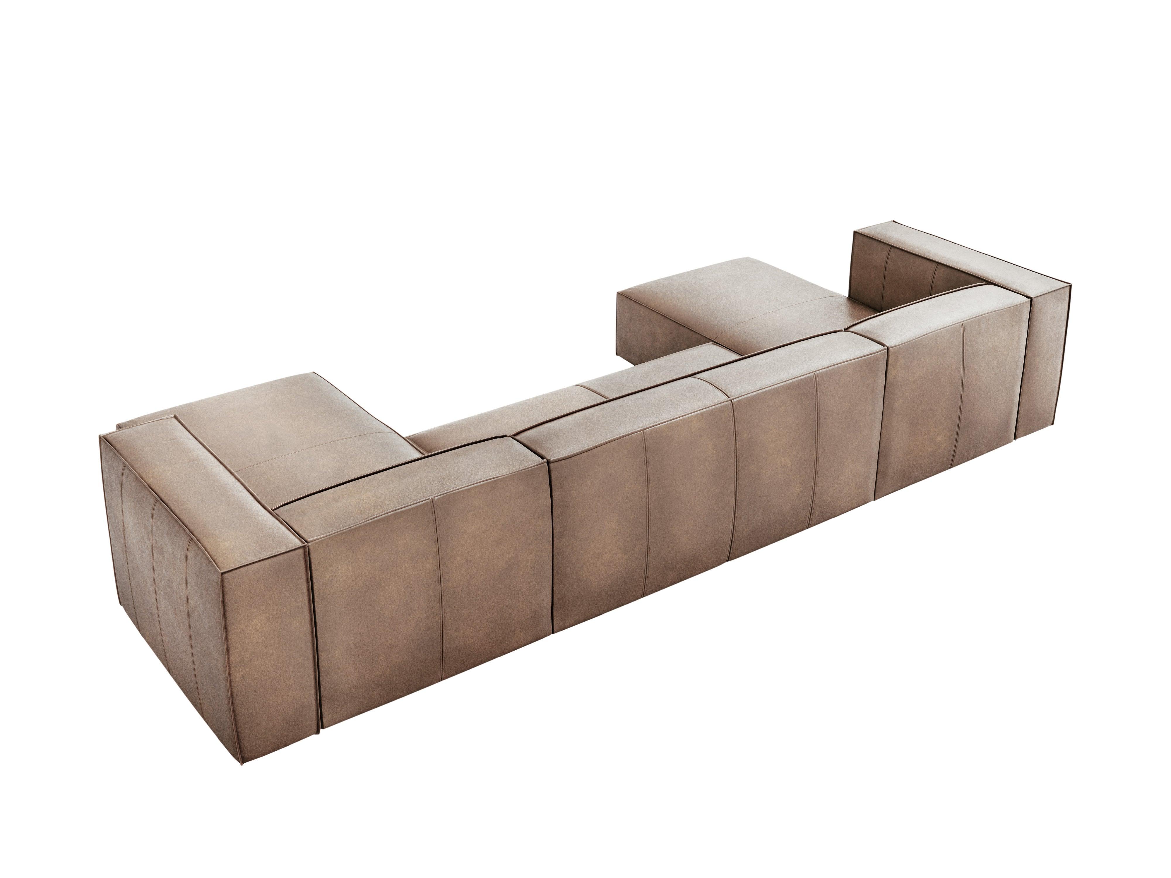 Leather corner sofa in a U shape Madame is the perfect combination of elegance and timeless form. The geometric, somewhat raw shape fits beautifully in modern classic interiors with a touch of modernity. Decorative stitching on the leather upholstery adds an extraordinary character to the whole piece. The wooden legs made of beech not only look beautiful but also provide a solid foundation.