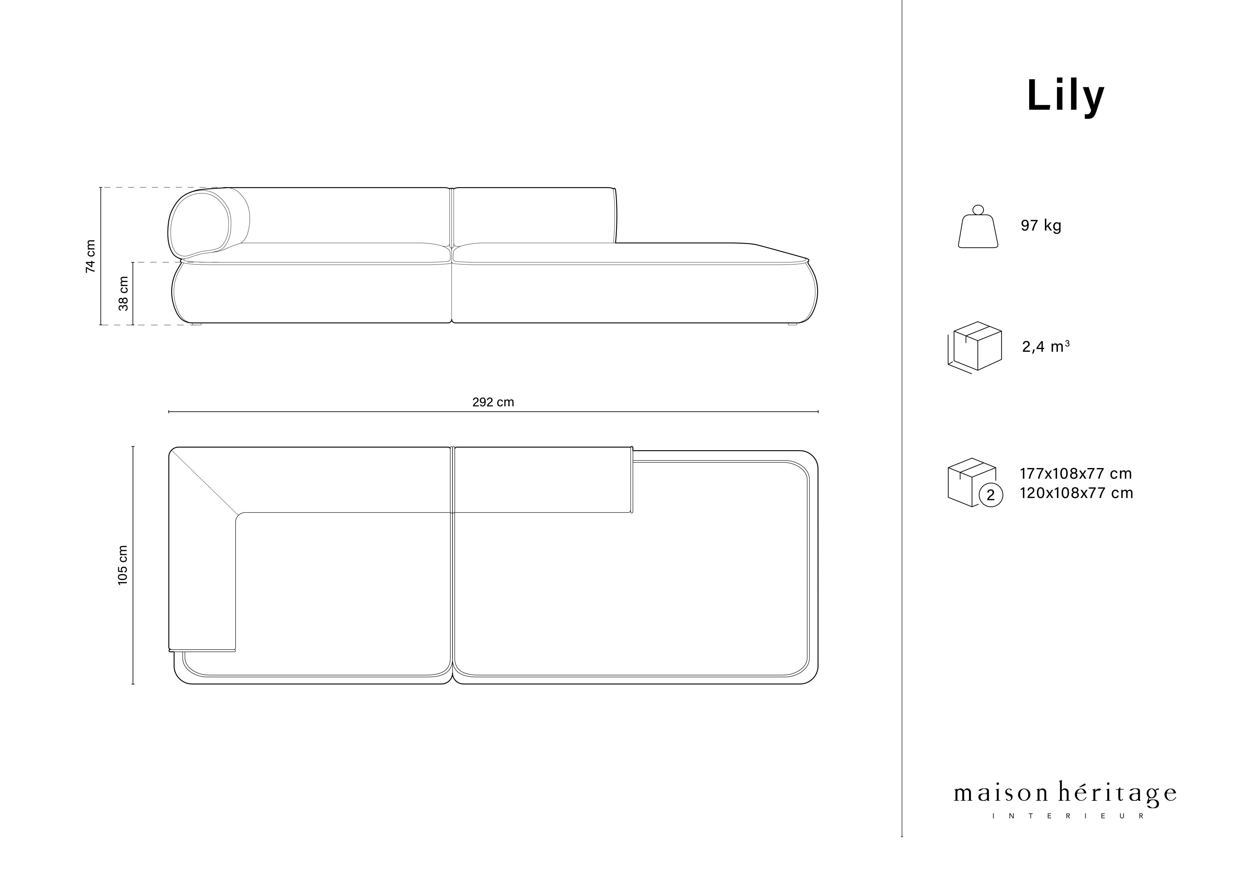 Deep seats are springy and exceptionally comfortable. Delicate tufting and stitching highlight the classic character of the design. With its low and wide silhouette sofa Lily will bring a bit of coziness and warmth to the interior. The collection offers various combinations of sofas and corner pieces, as well as a chaise longue and a large pouf, allowing you to create a unique decor.