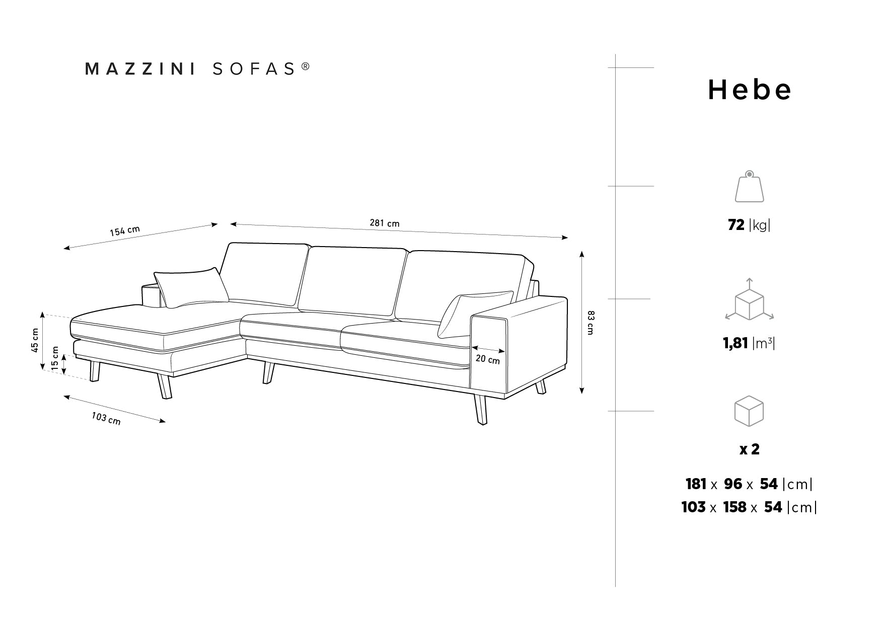 Narożnik aksamitny lewostronny HEBE ciemnoszary Mazzini Sofas    Eye on Design