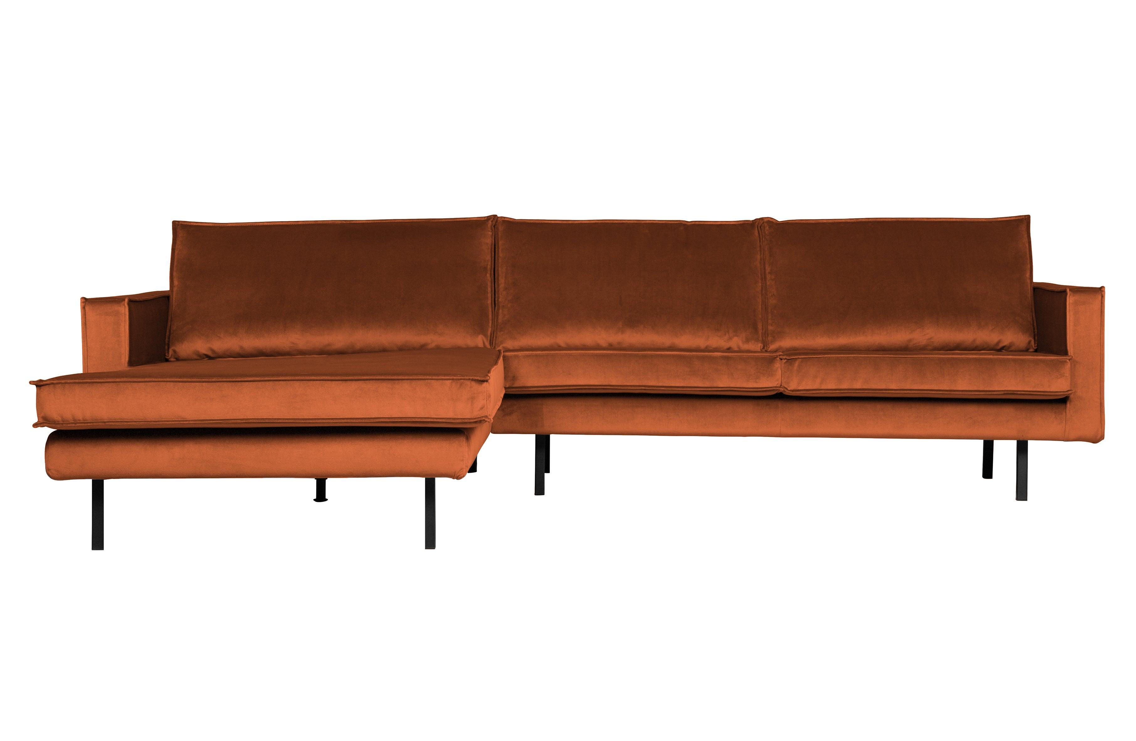 Left-Sided Corner Sofa Rodeo is an elegant and functional piece of furniture that provides plenty of seating space. The slim frame and loose cushions give it a designer look, while the velvet material and black metal legs add a unique character to it.