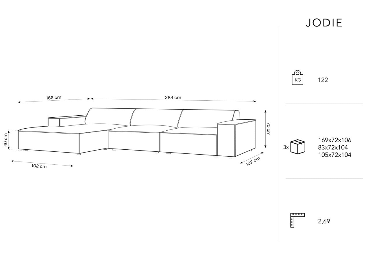 Left-handed 4-seater jodie light gray jodie