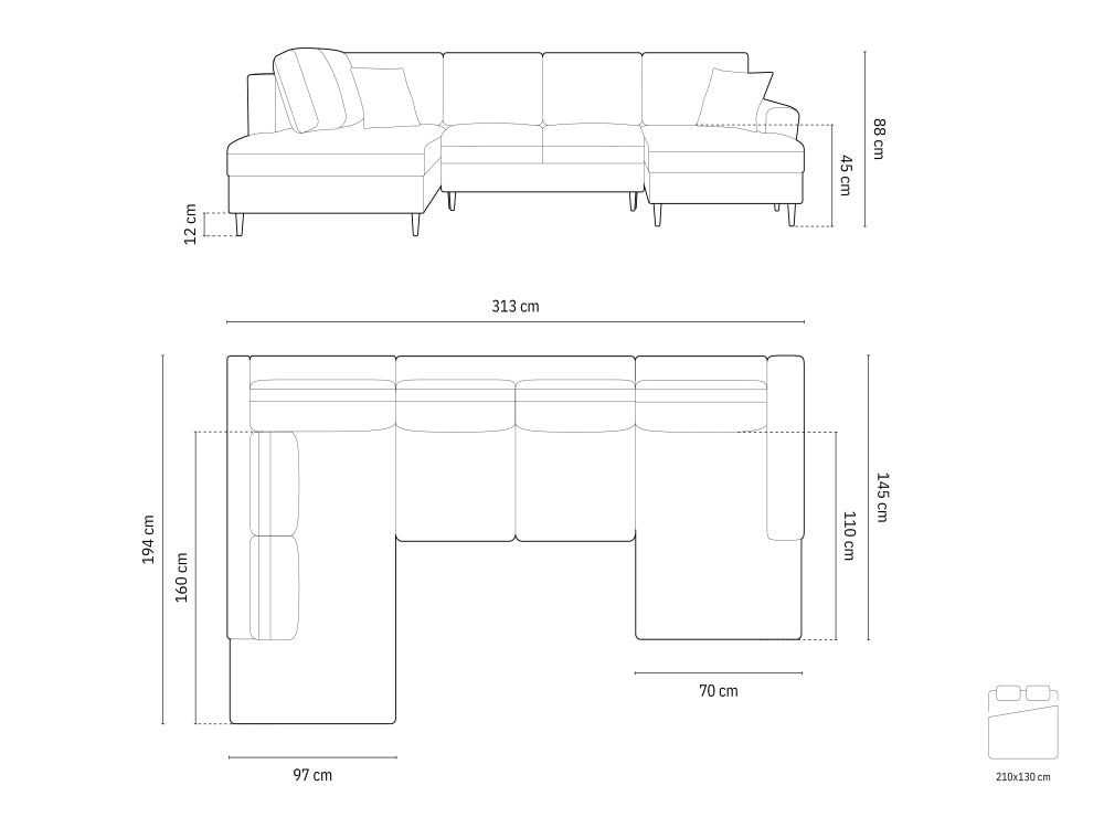 Left -handed corner velvet panoramic with Kyoto Dark gray sleeping function with a golden base