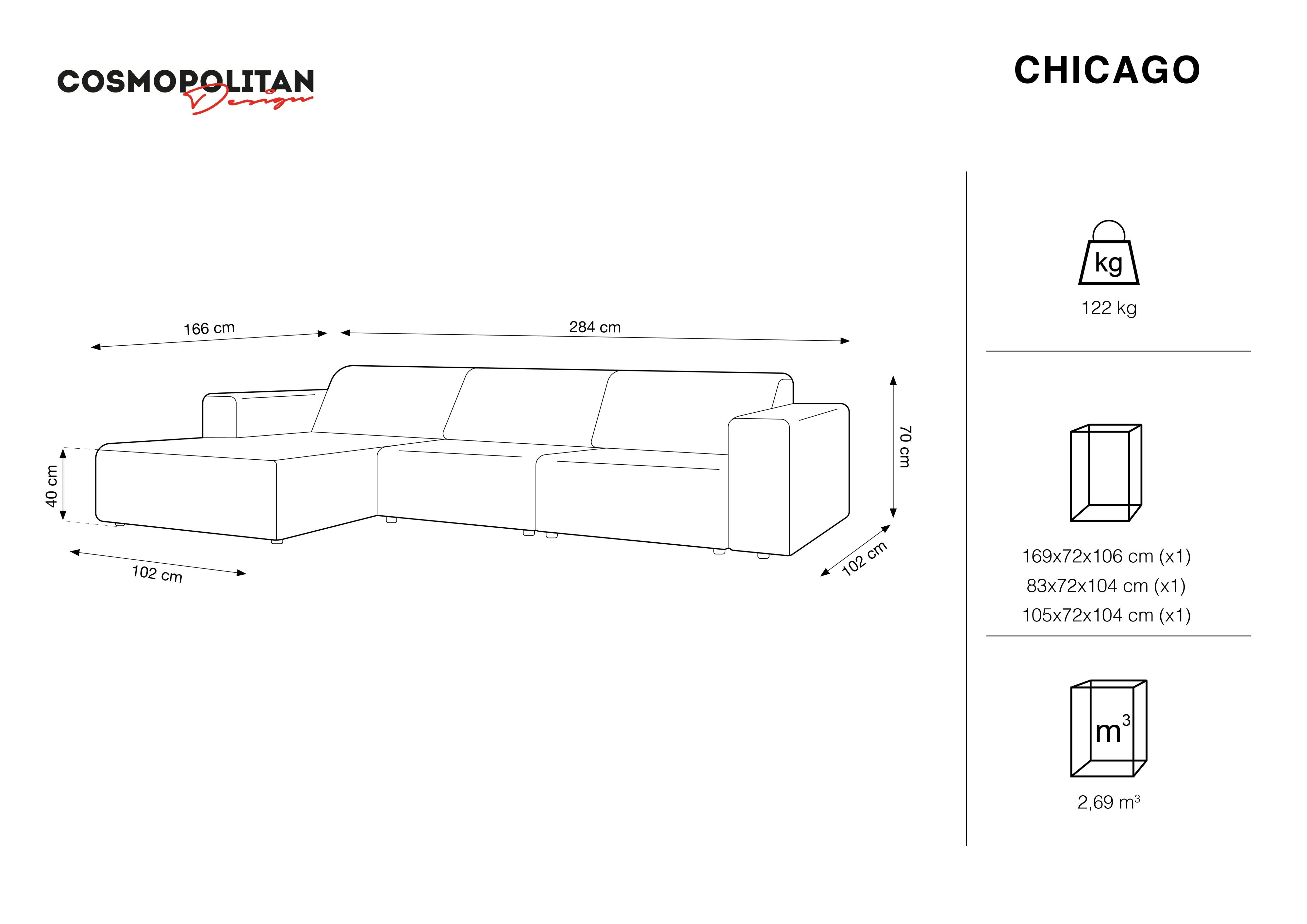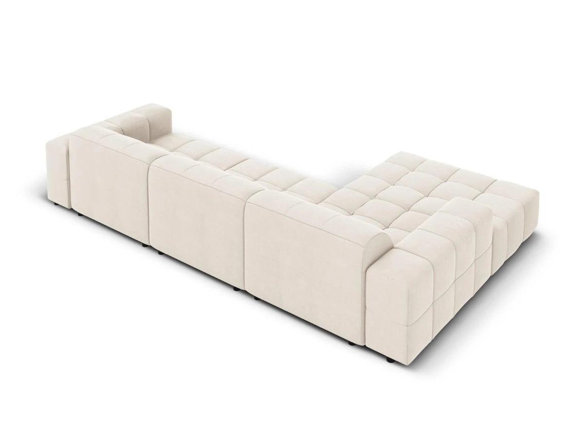 The corner sofa for four people Chicago features an exceptional design, where gently tufted seats and numerous stitching on the backs give the whole a refined appearance. The low, expansive shape exudes extraordinary elegance, perfectly highlighting the style of the living room. The springy, deep seats with generous padding guarantee not only comfort but also complete relaxation after a long day.