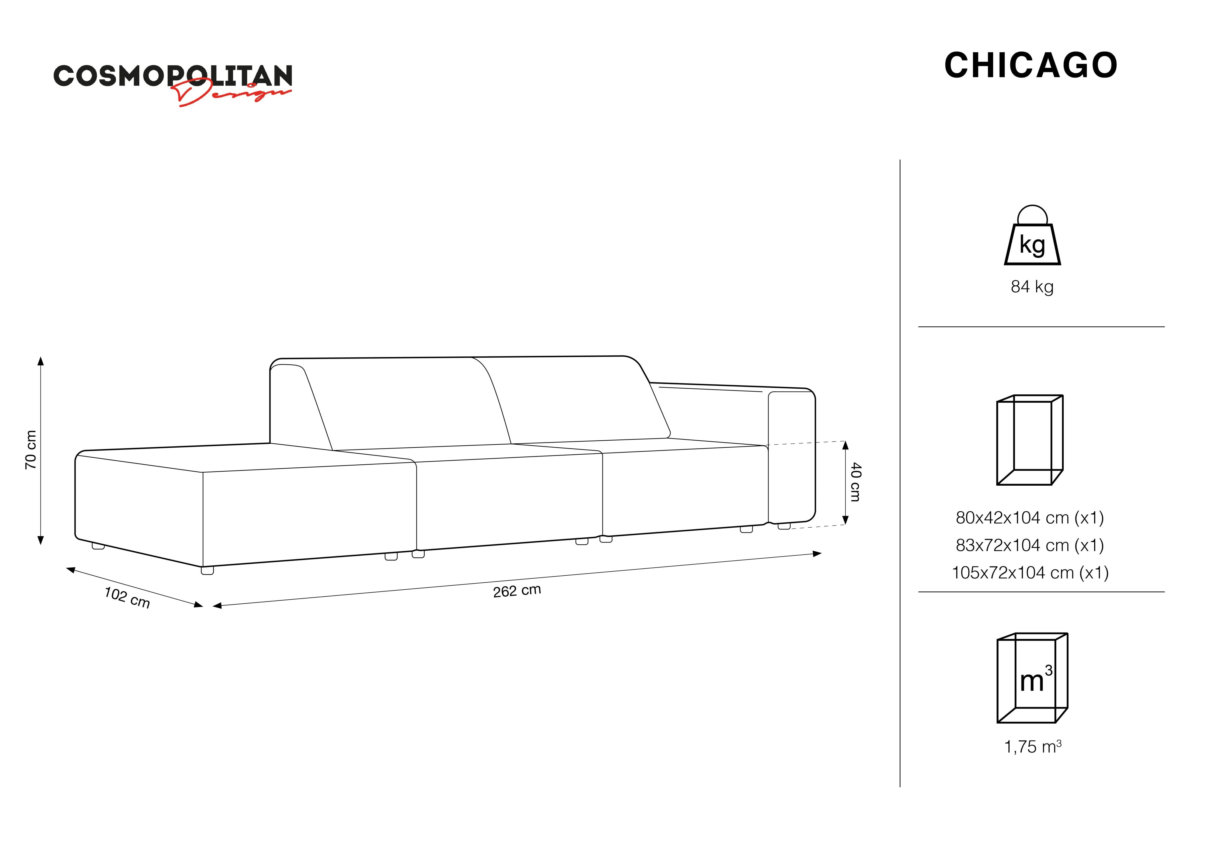 Left-sided 3-seater chicago light beige