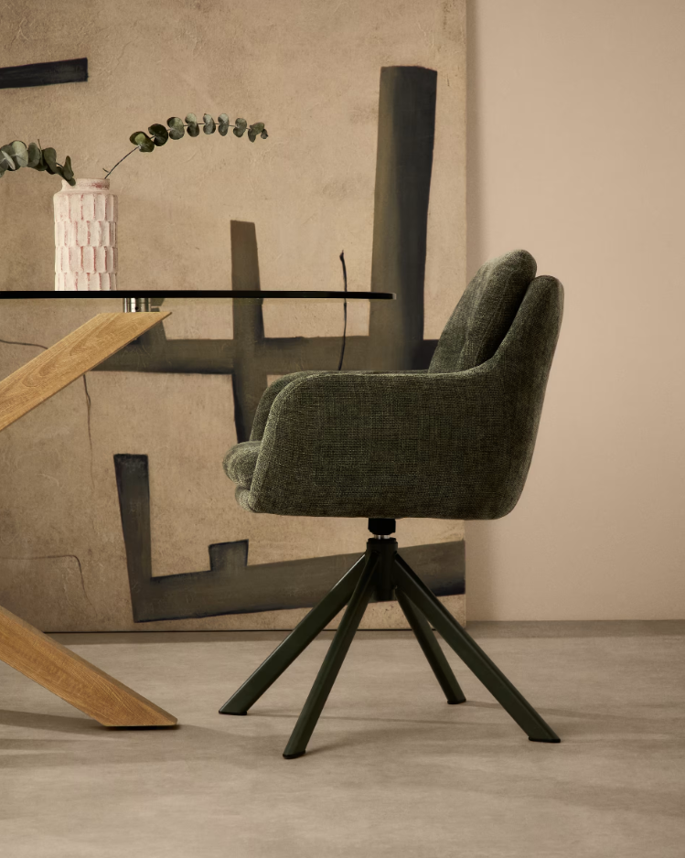 Chair Lexa is a harmonious combination of functionality and aesthetics, which perfectly fits into any interior. Upholstered with a szenil fabric with a small structure and a soft touch, a seat and a dual pillow backrest ensure exceptional comfort of use. Thanks to versatile shapes chair Lexa adapts perfectly to any space, offering comfort and style at the highest level.