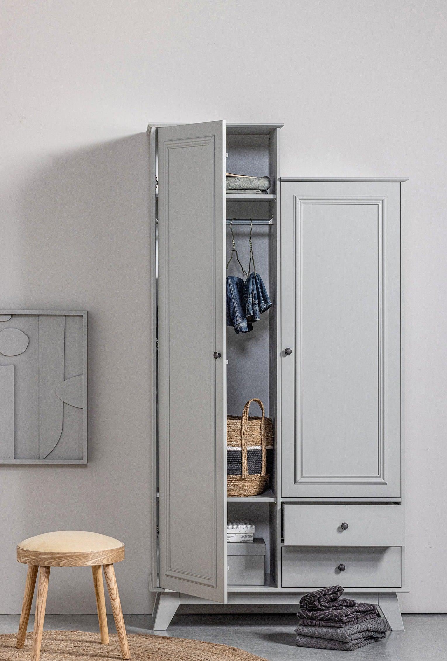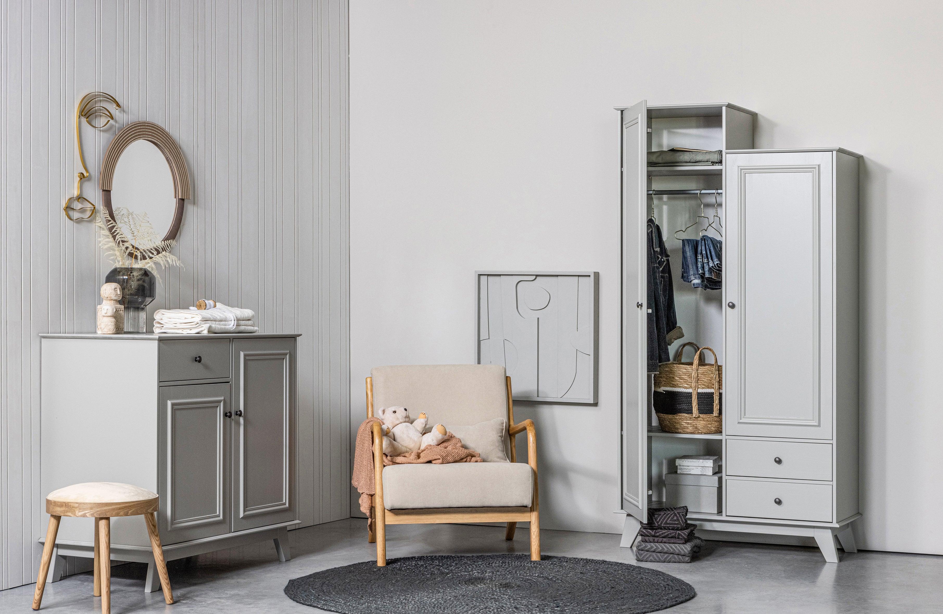Lily wardrobe is a beautiful and sturdy piece of furniture made from solid pine with FSC certification, which will fit perfectly in the bedroom, hallway, or living room. The wardrobe is finished in a sanded shade, and the milled fronts add character to it.