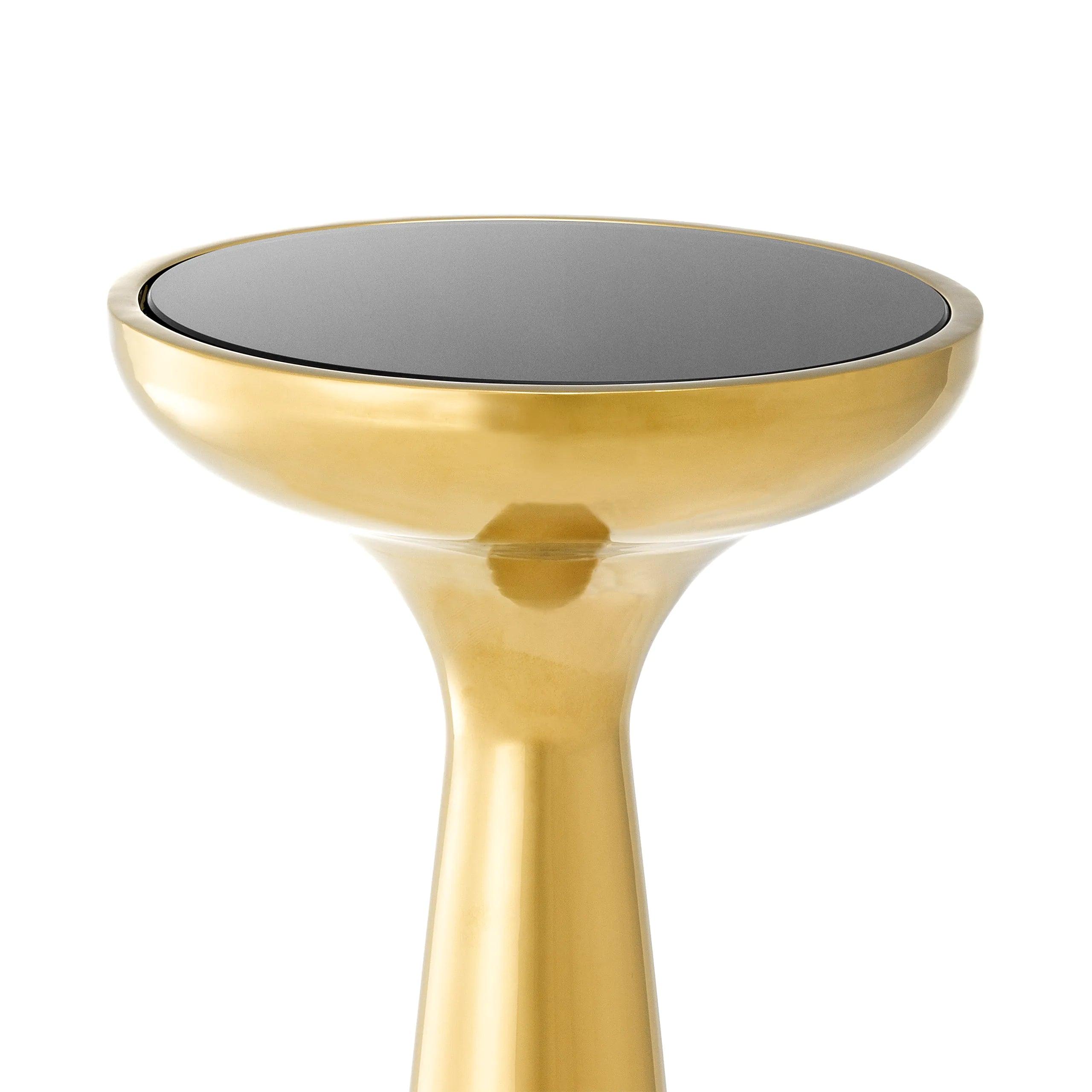 Side table Lindos is the epitome of Scandinavian elegance, combining functionality with timeless design. Its organic shape and stunning combination of gold with a black glass top make it not only a practical piece of furniture but also a unique decorative accent in any interior.