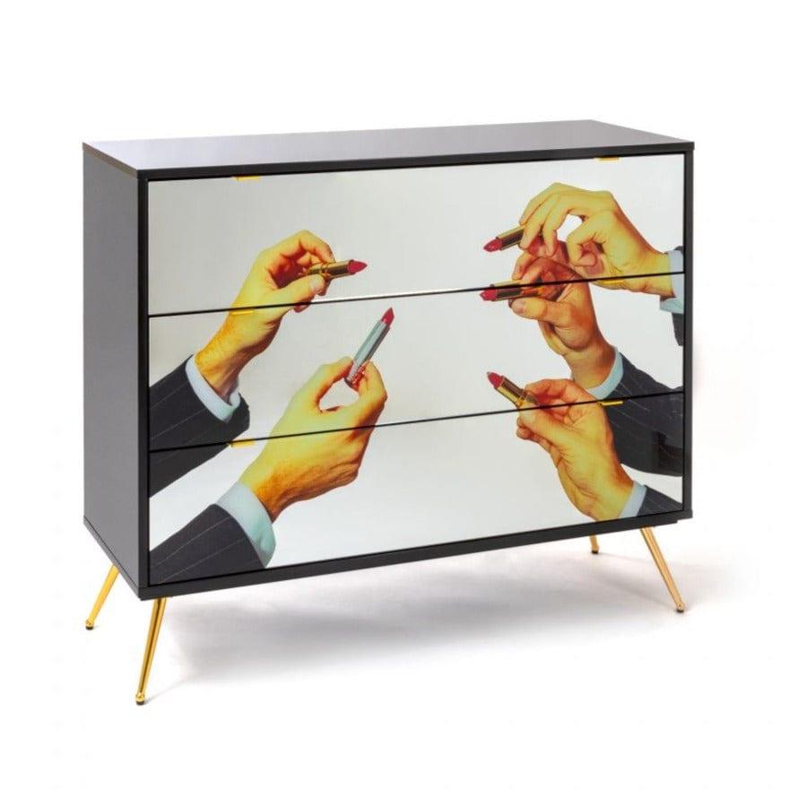 Designer cabinet This is another project of the Italian king of avant -garde - Seletti, who, like a gate to another, surreal dimension, will give the interior a unique character. The glass cabinet fronts are distinguished by a distinct, full dynamism and a slightly controversial collage, creating an original work of art.