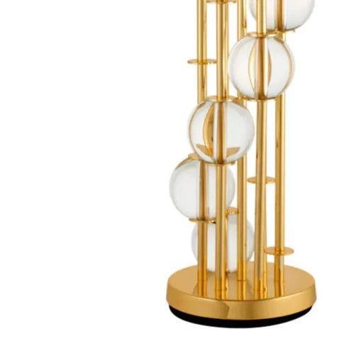 Six spheres of crystal glass create a fascinating composition, capturing light and reflecting it in an extraordinary way, giving the lamp a remarkable aura. The round shade made of white fabric adds delicacy to the entire structure, balancing the impressiveness of the crystal steel frame. Gold table lamp Lorenzo is not just lighting; it is a true work of art that combines functionality and aesthetics. Its presence in the room will not only illuminate it with gentle light but also add exceptional elegance.