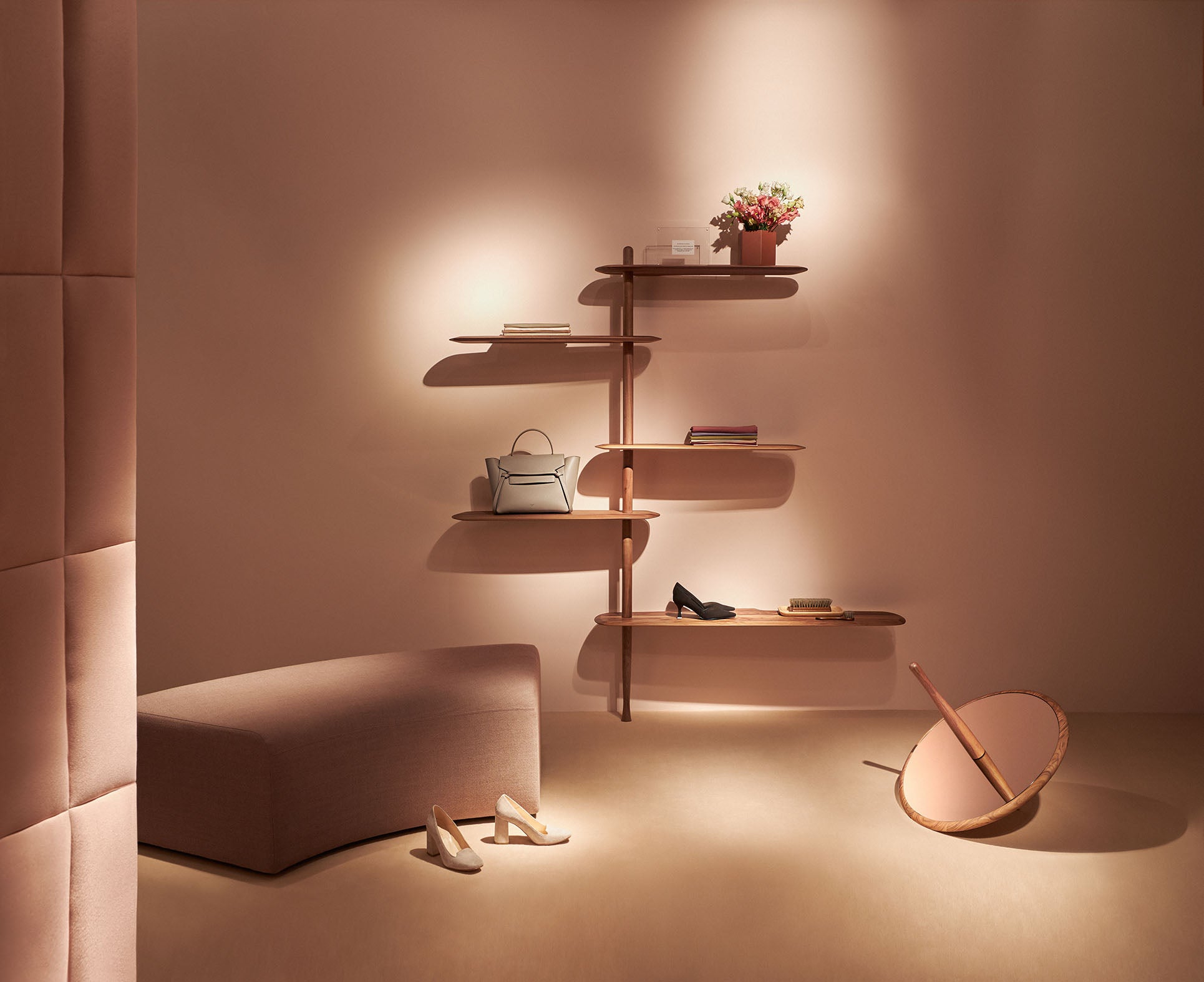 This modern decorative mirror made from solid wood and finished with polished metal details is perfect as a centerpiece in any space – whether in the living room, bedroom, or elegant hallway. The brown finish of the glass adds depth and subtle elegance, while the dynamic form makes the designer decorative mirror Peonza not just a practical accessory, but also an artistic sculpture.