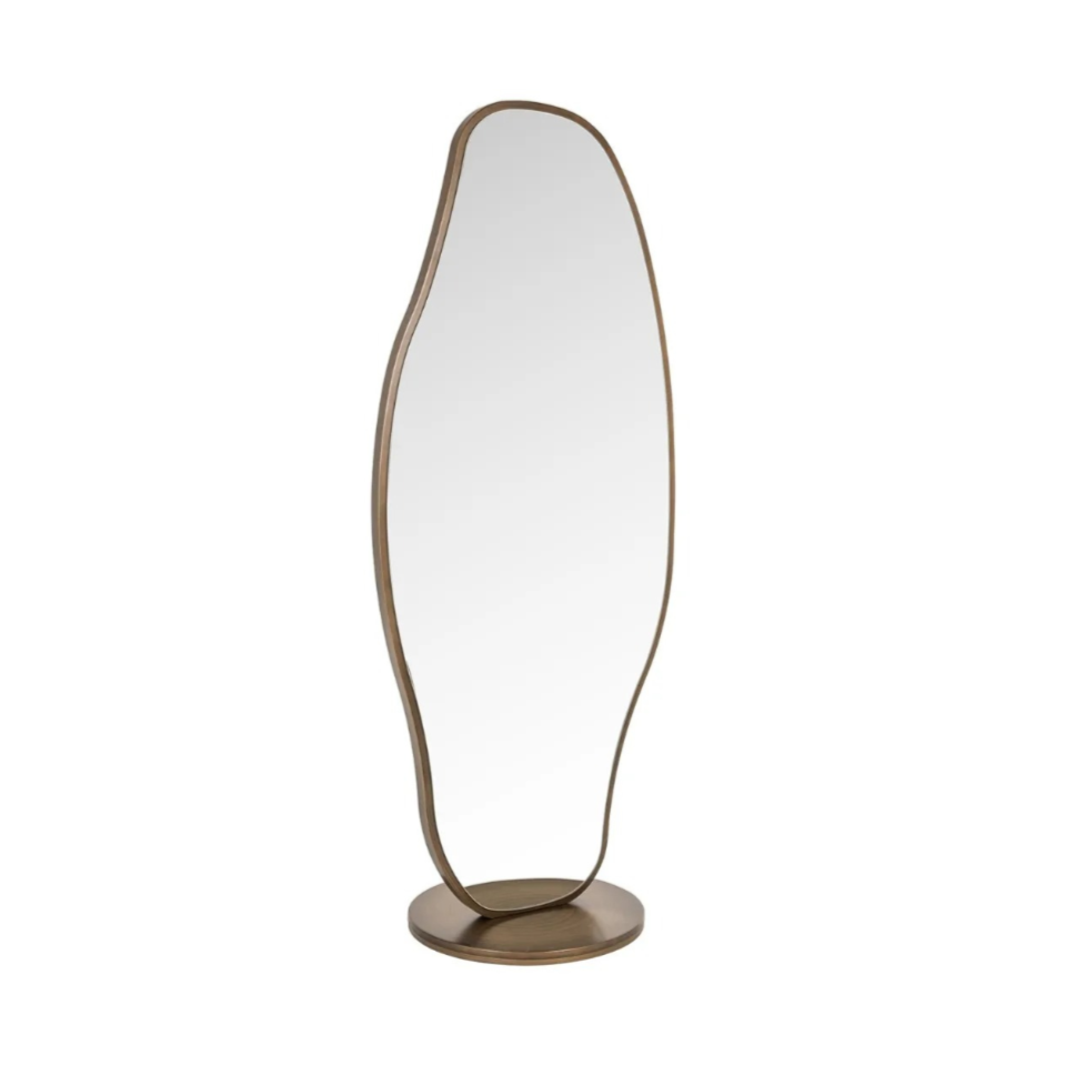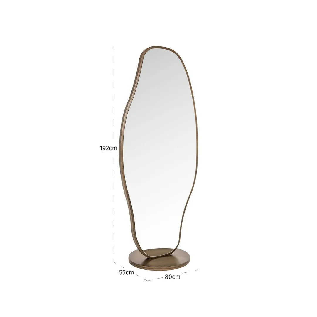Designer mirror Jalyce with an organic shape is a unique interior design element that combines functionality with modern aesthetics. The brushed gold frame adds elegance and a luxurious character, while the unusual line of the mirror draws attention, creating a stunning decoration. Thanks to its large size, the mirror is perfect for the living room, dressing room, or hallway, visually enlarging the space and giving it a unique style.