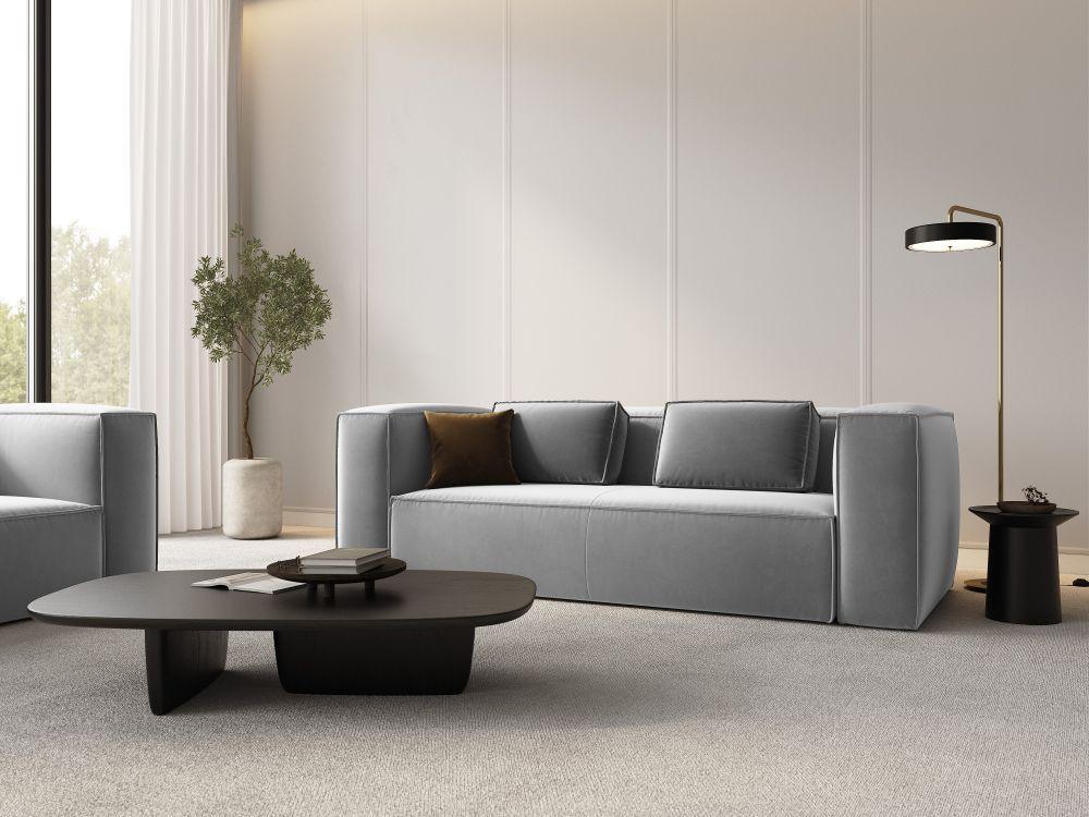 Sofa for three people Mackay is a masterpiece of minimalist design that delights with its simplicity of form and elegance of velvet fabric. Its modern silhouette, with clearly defined lines and harmonious proportions, perfectly fits into the aesthetics of contemporary interiors. Made from high-quality materials, the Mackay sofa combines durability and comfort. The velvet fabric gives the sofa a unique character, introducing a touch of elegance and coziness to the interior.