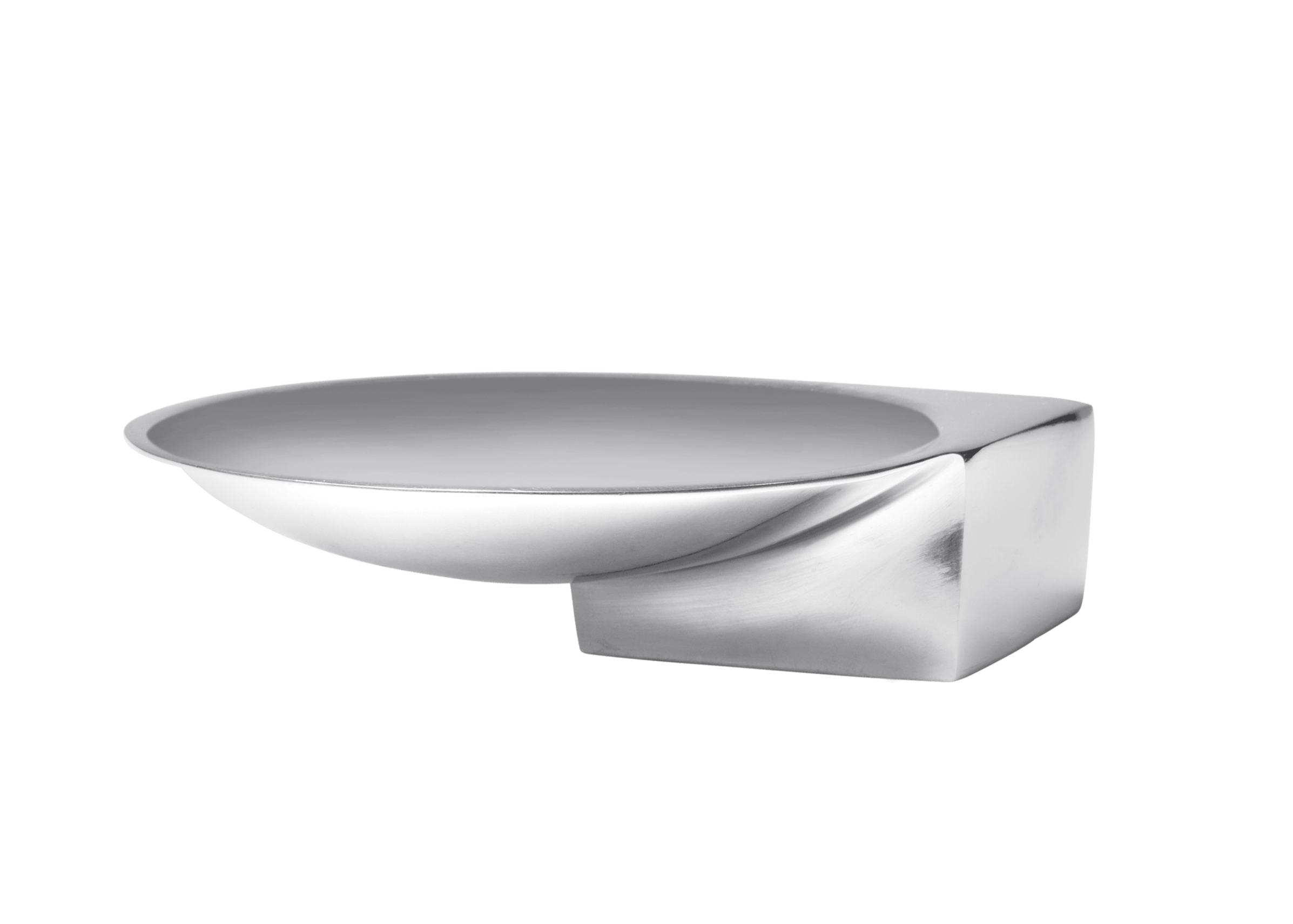 The Santany Bowl made of solid, polished aluminum is a minimalist bowl with a sculptural form and high gloss, bringing a modern touch to the interior. Its geometric silhouette and reflective surface subtly bounce light, adding a sense of airiness and sophistication to the arrangement.