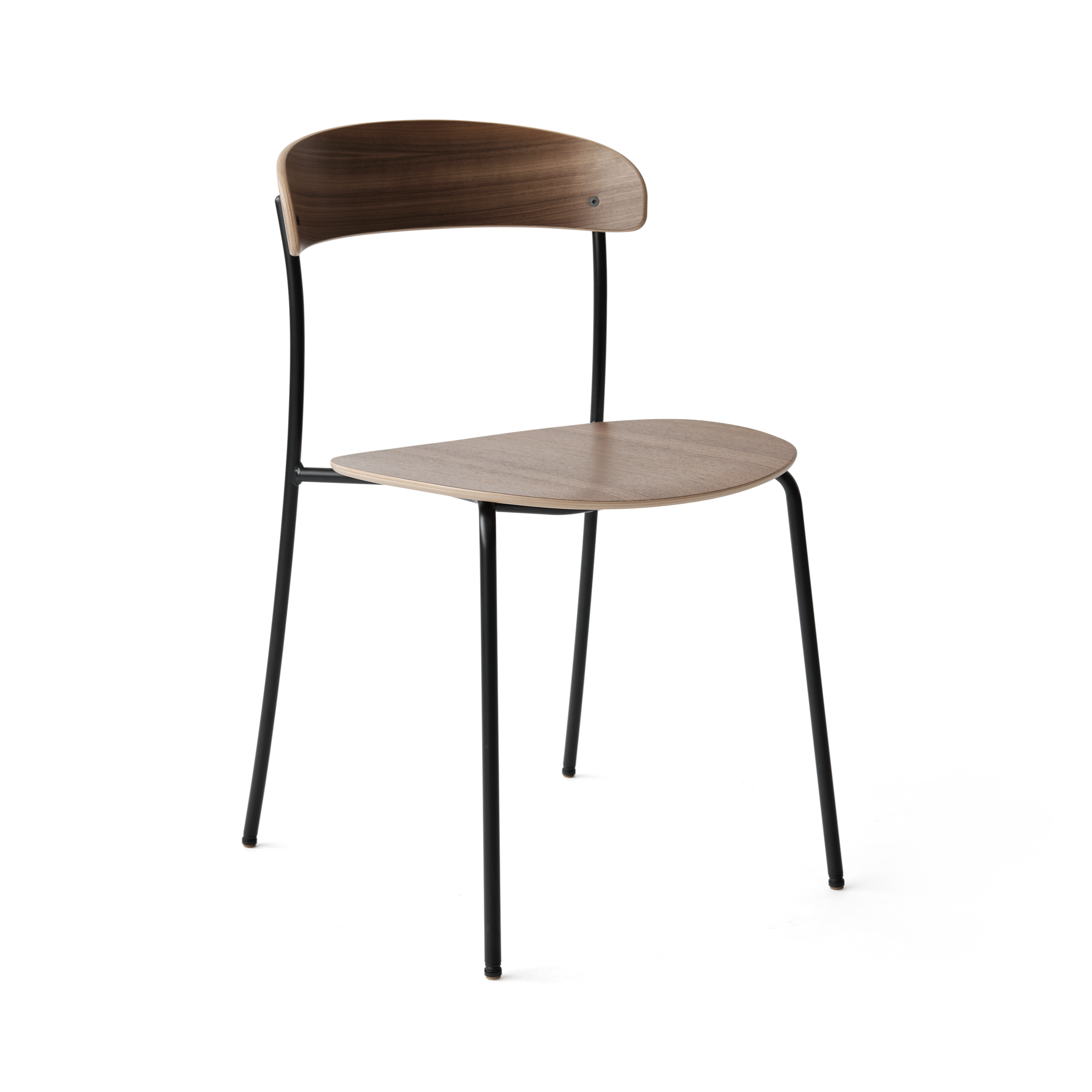 The seat and support covered with nut veneer give the furniture a warm, natural appearance, emphasizing the elegance of wood and its unique grain. Thanks to the ergonomically designed proportions, the chair offers convenient use, works well in both the dining room and in commercial spaces, such as restaurants or cafes.