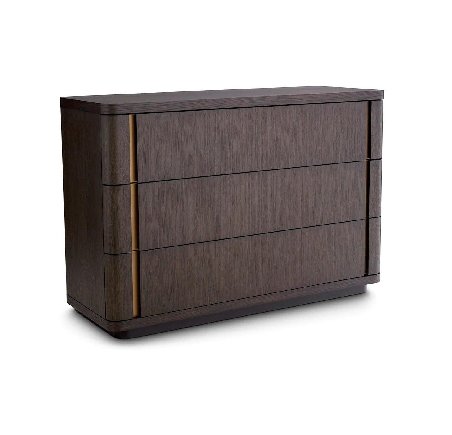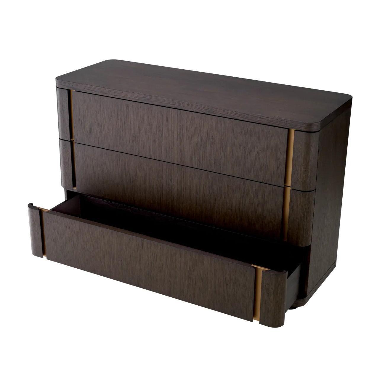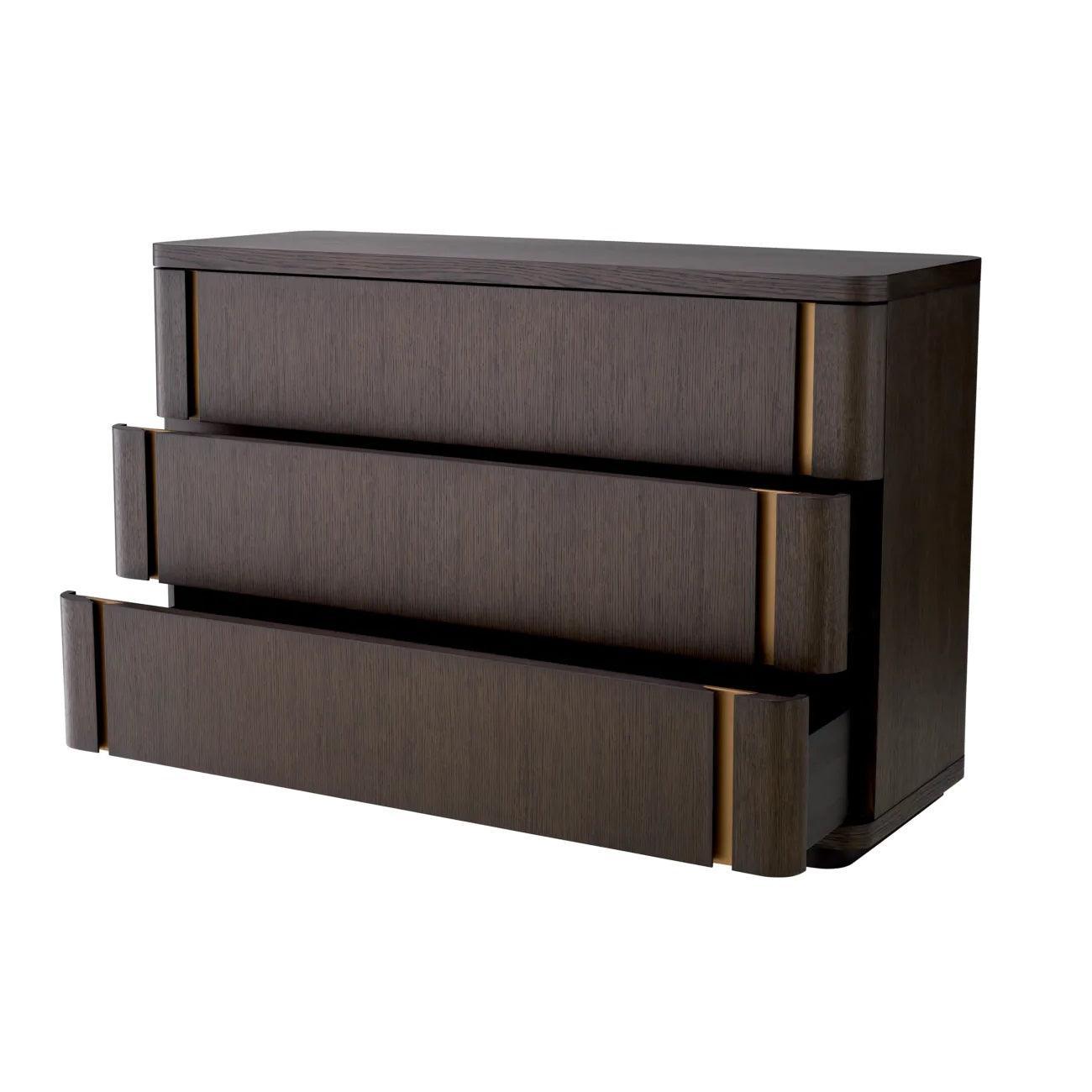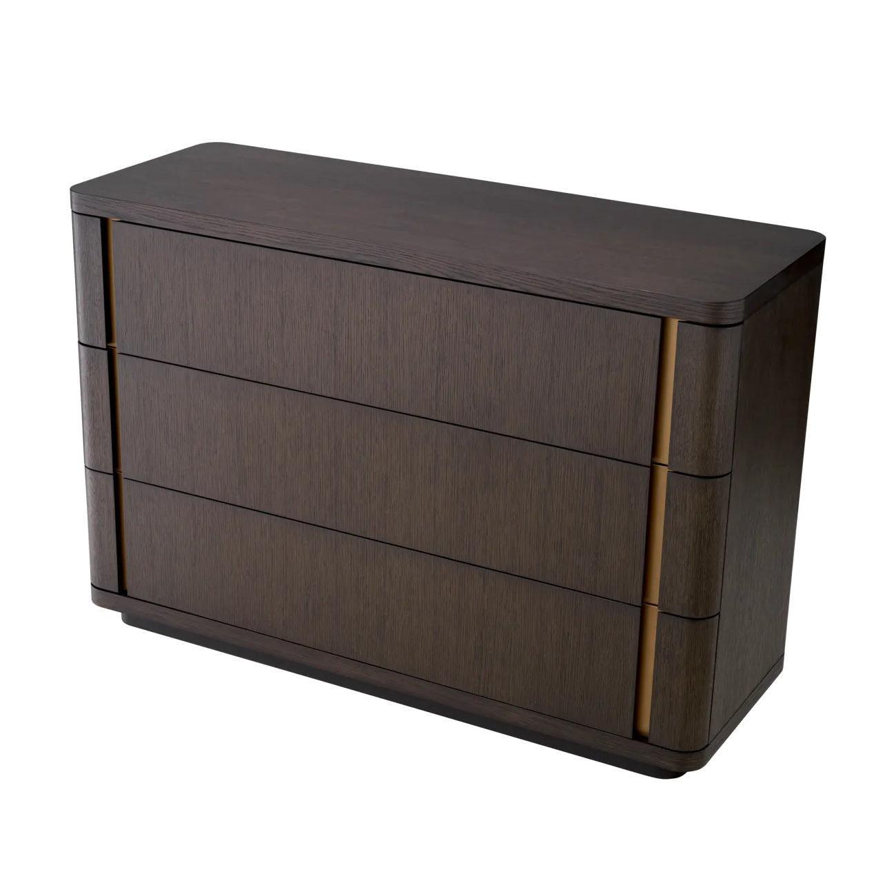 Dresser Modesto is the embodiment of perfection in detail, a mixture of class and functions. Her elegant lines and sophisticated finishes speak to the most demanding aesthetics, encouraging to look closer to her masterful construction. The chocolate shade in oak veneer recalls the atmosphere of luxury, and the finish of brushed brass adds a sophisticated, metallic accent, giving the whole sophisticated character.