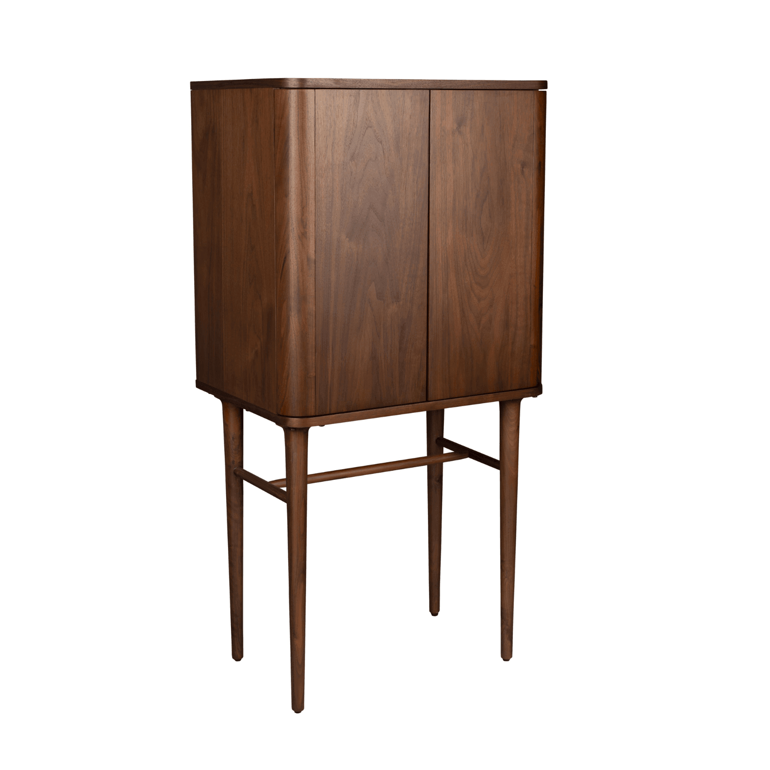 Cabinet Morrison proves that storage furniture can also be an interior decoration. Its deep shades of nut veneer in combination with soft, rounded corners immediately fill the room with a moody atmosphere. The appearance refers to the style of past years, recalling the quality and elegance of historic furniture.