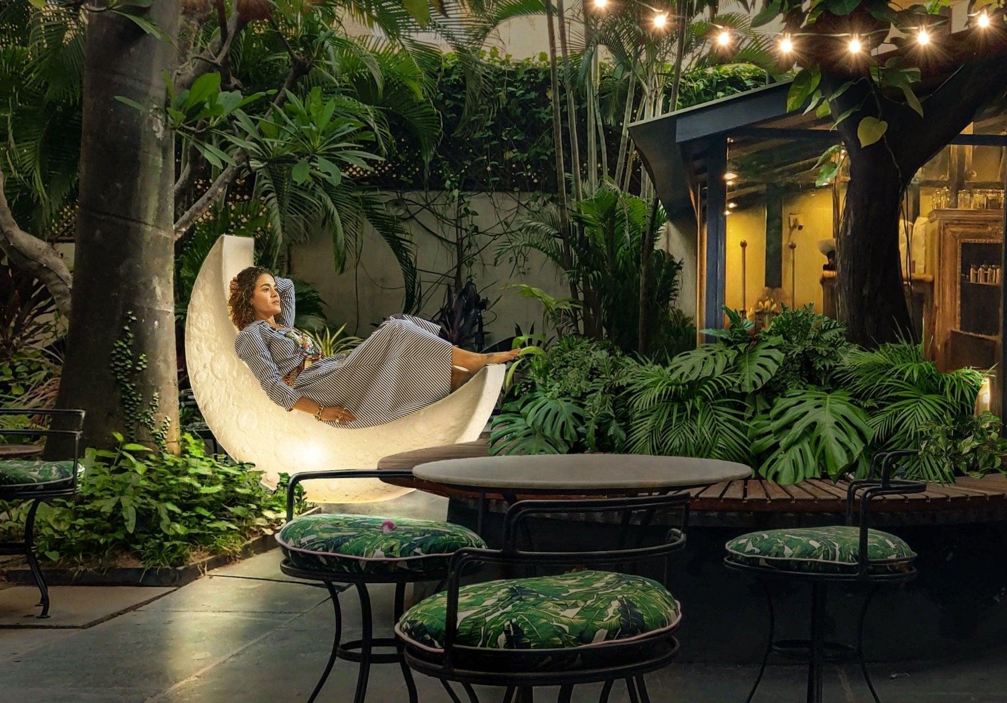 My Moon lamp It works both inside and outside and is resistant to rainfall. It will be a unique decoration that will create mood lighting and will work as a furniture to sit.