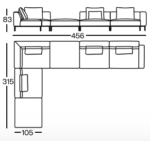 Right-facing modular sofa for 6 people HOLDEN upholstered with a black base