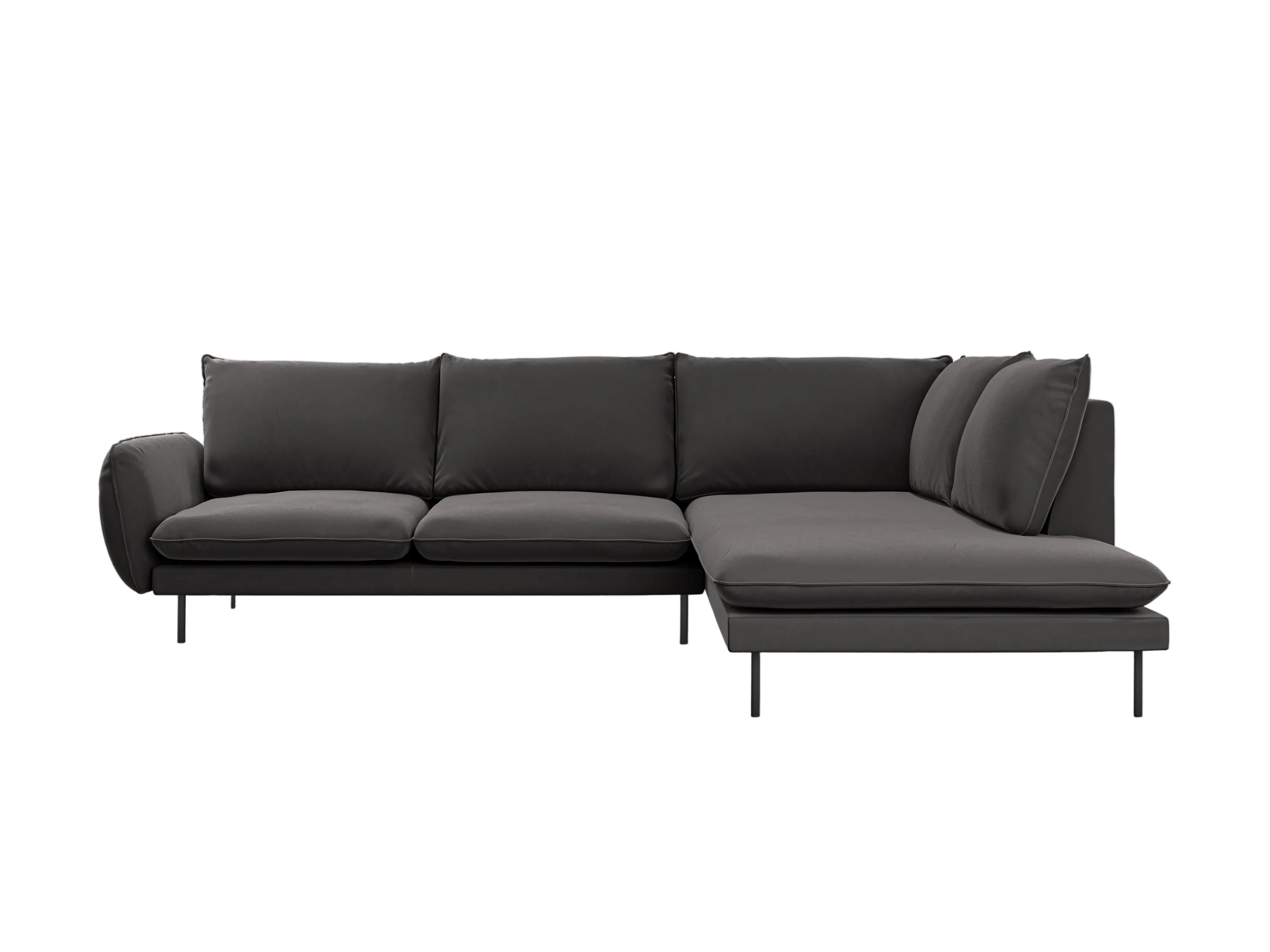 Velvet corner sofa for 6 people, right-facing, VIENNA, dark gray with black base