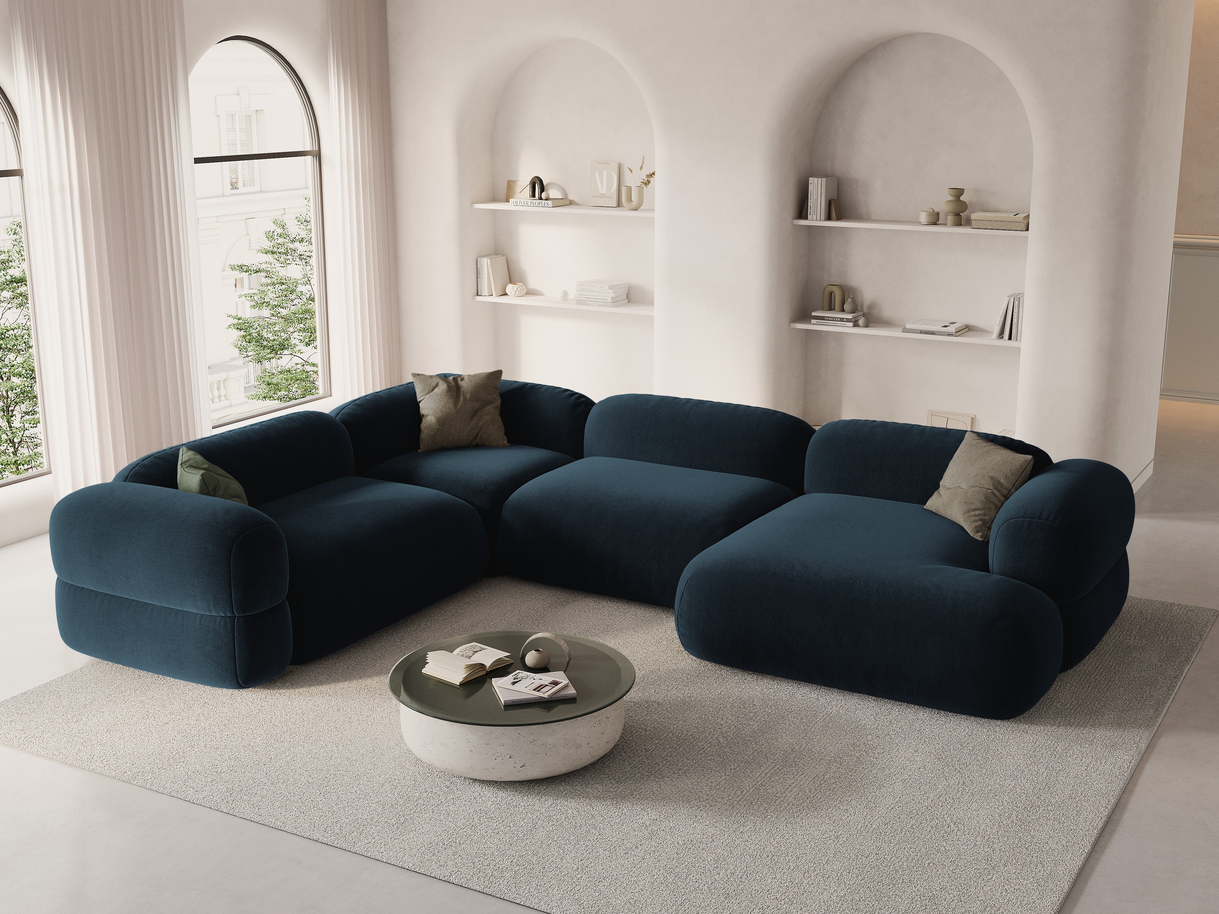 Velvet U-shaped left corner sofa ROGER petrol blue