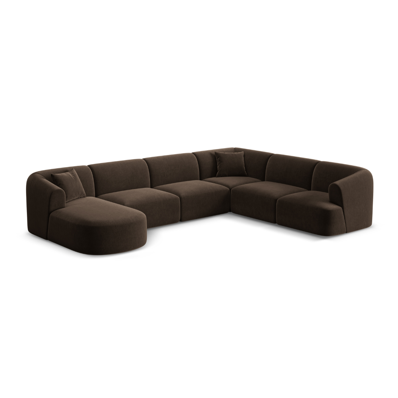 Right-facing velvet panoramic corner sofa for 7 people CAMPI chocolate