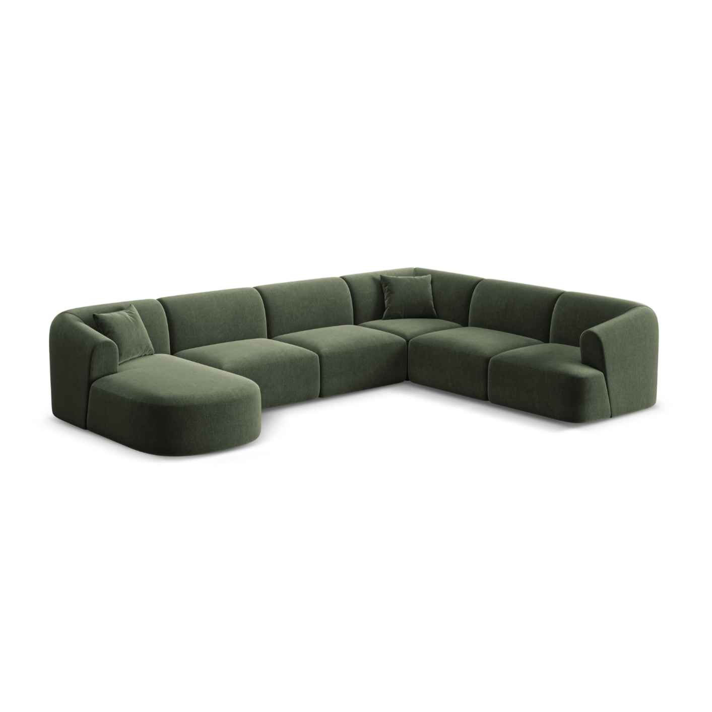 Right-facing velvet panoramic corner sofa for 7 people CAMPI green