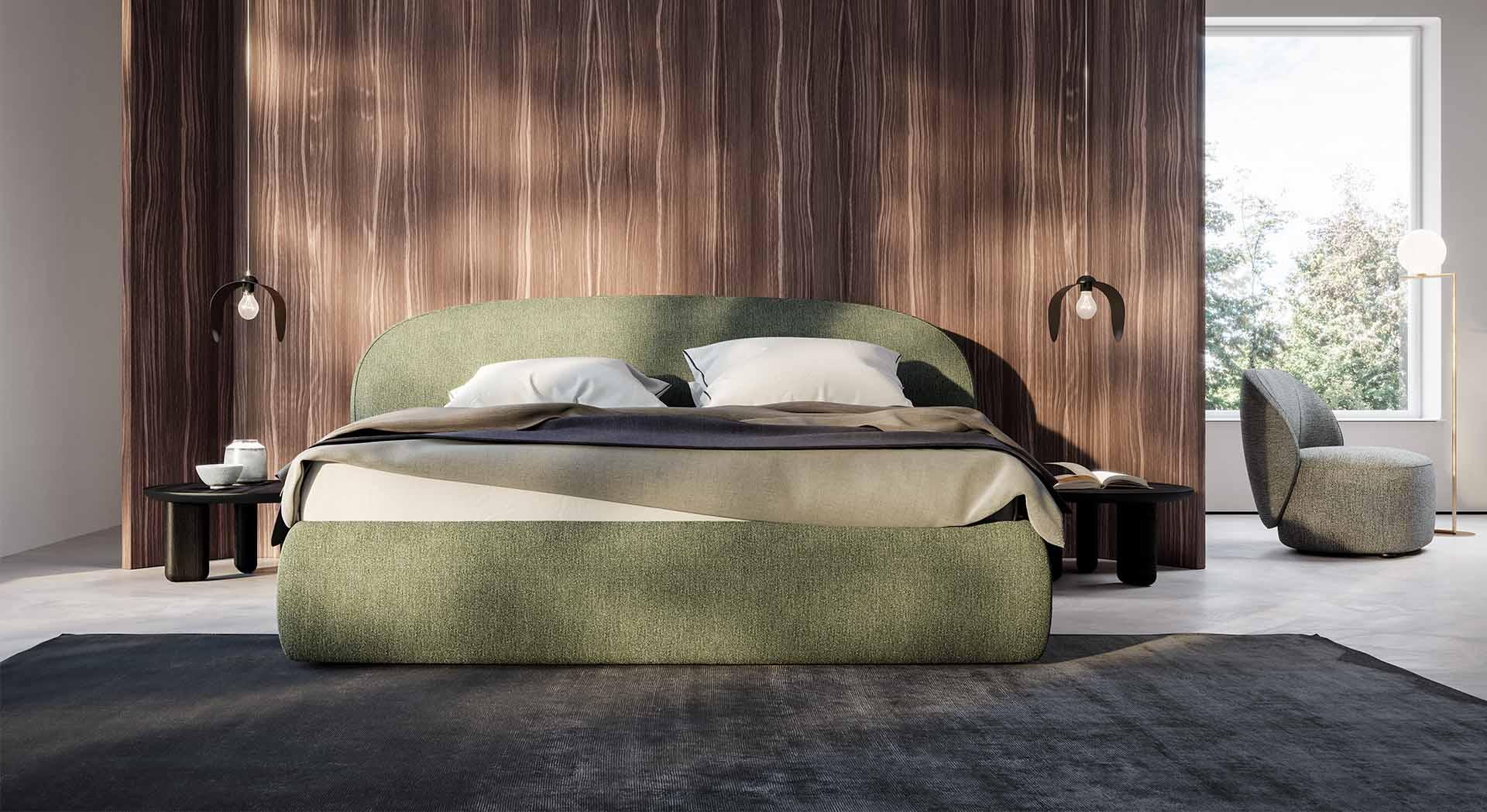 Caillou Bed is a perfect example of harmony between comfort and design, which are fundamental features of modern living. With its sculptural and defined lines, this bed brings a simple and essential shape to the bedroom while providing softness and coziness.