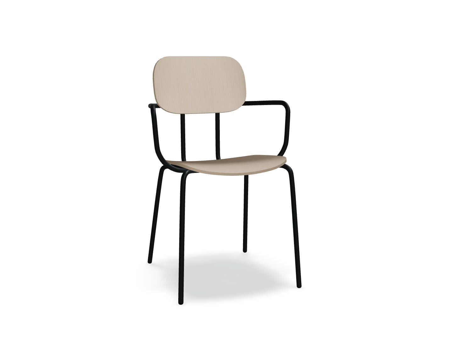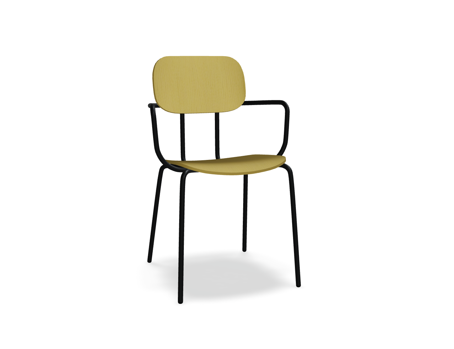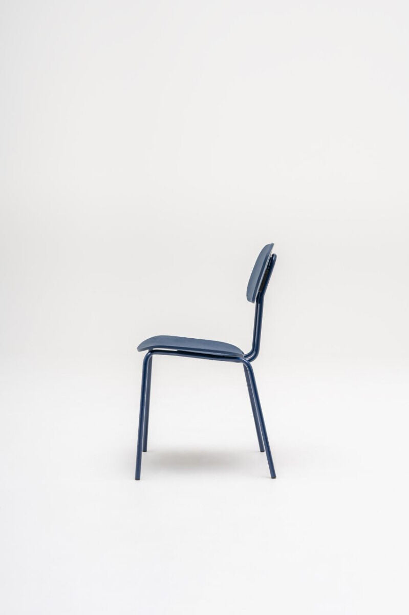 Plywood Chair New School is a modern take on the classic school chair, offering many configurations. In its four-legged version, with optional armrests, it is perfect for offices, cafeterias, and also in home spaces. The plywood seat is durable and easy to maintain, making it ideal for places with high user turnover.