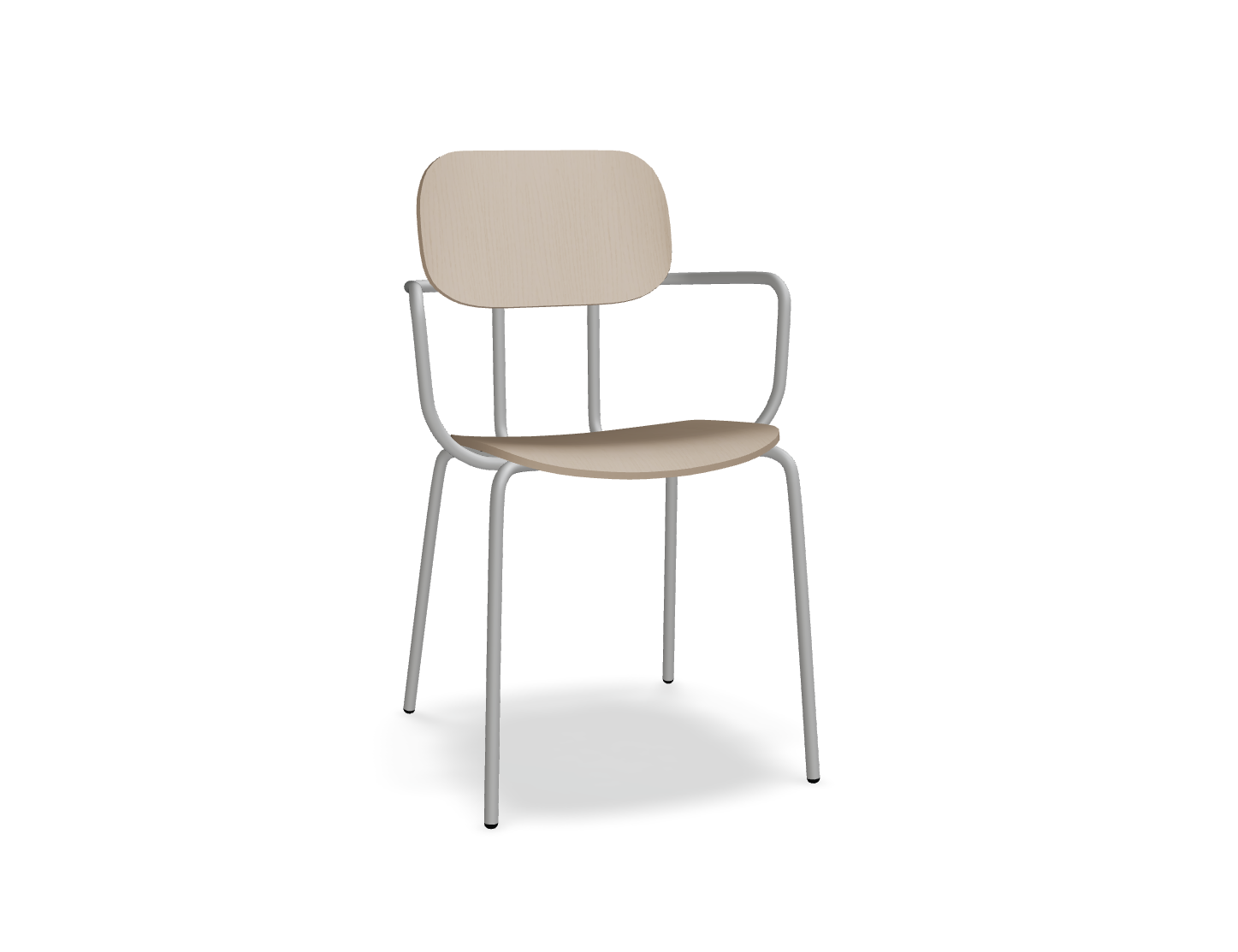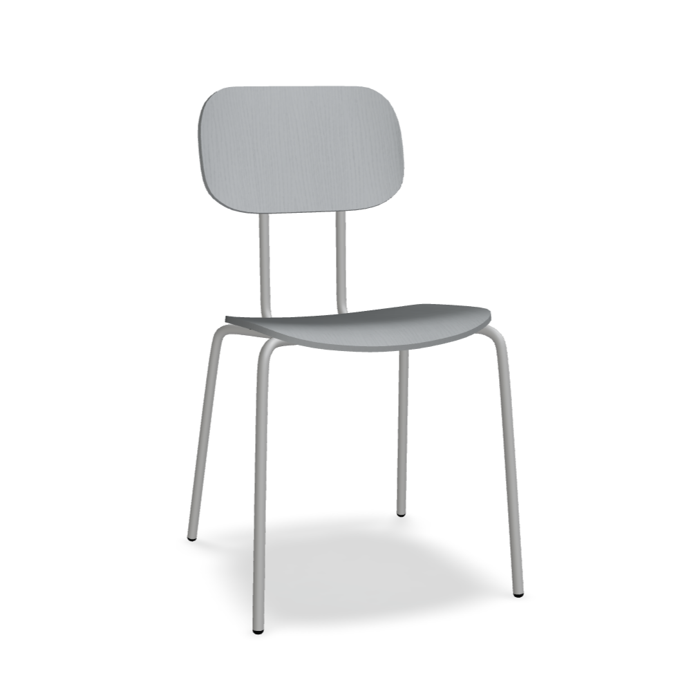 Plywood Chair New School is a modern take on the classic school chair, offering many configurations. In its four-legged version, with optional armrests, it is perfect for offices, cafeterias, and also in home spaces. The plywood seat is durable and easy to maintain, making it ideal for places with high user turnover.