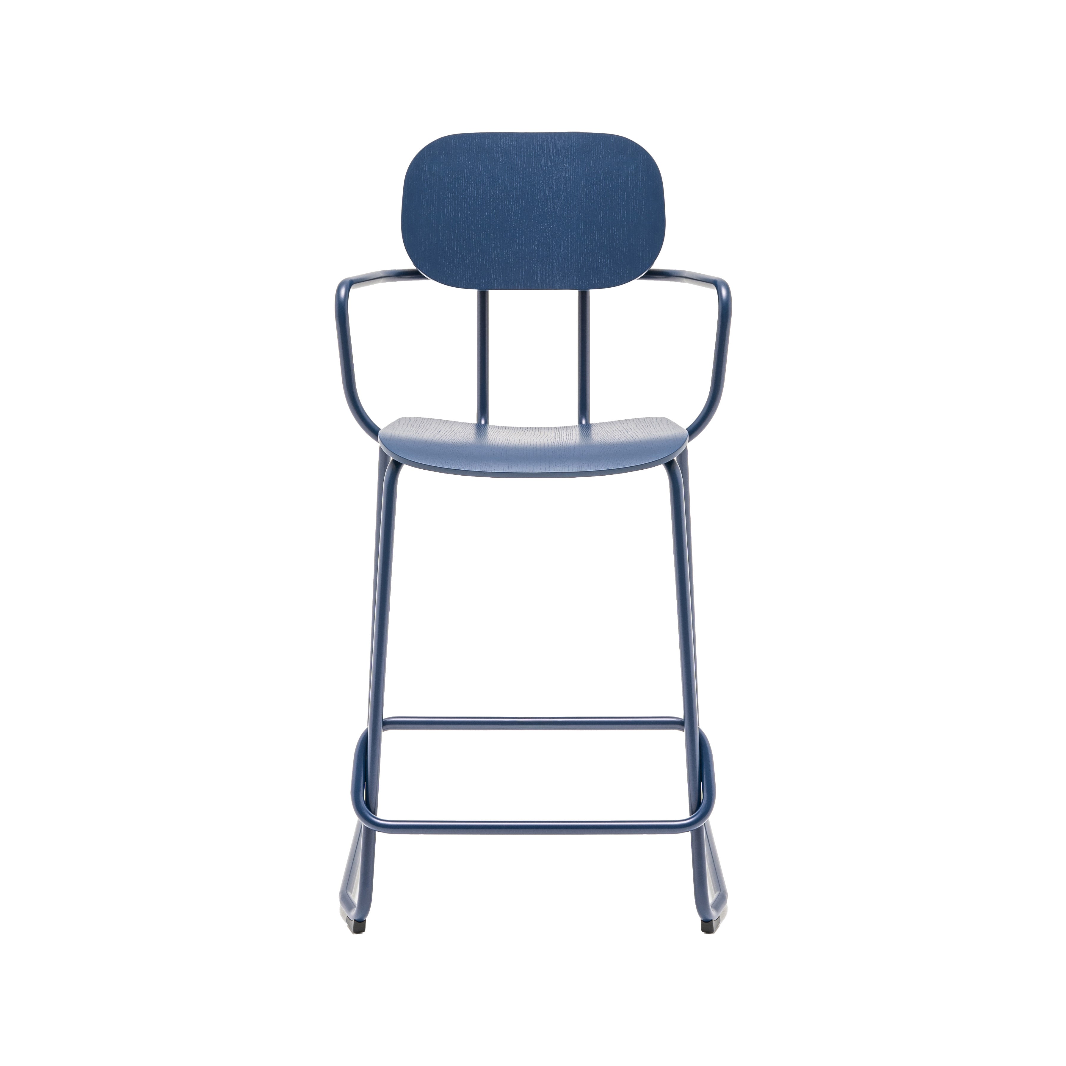 Hoker New School, designed by Studio Form US with Love, is a modern reinterpretation of a traditional school chair. This stool is perfect for office canops, bars, cafes and kitchens with a high top. Available in two heights, it allows you to match various countertops. It is distinguished by an integrated footrest and optional armrests, which increases the comfort of use.