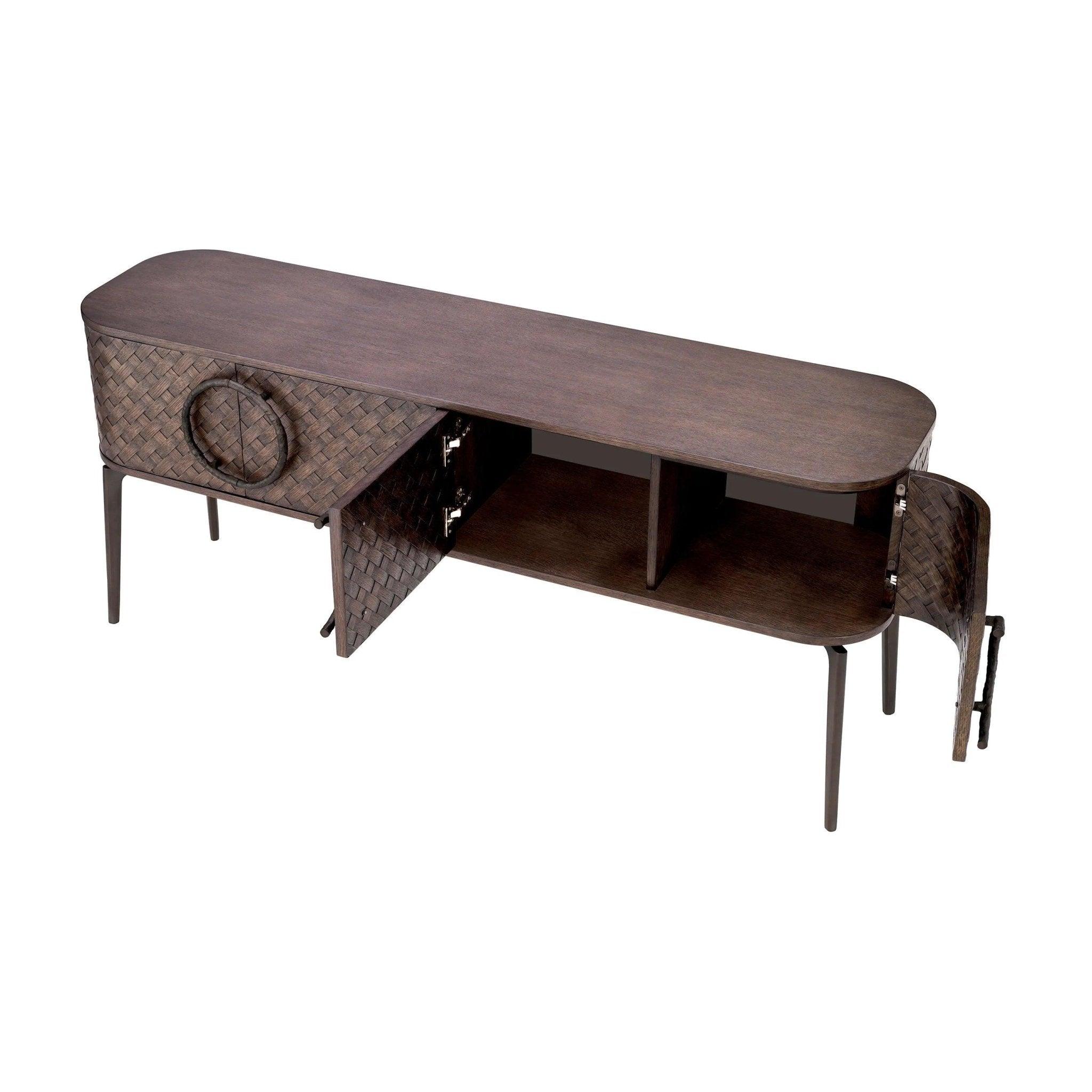 Brown chest of drawers Nilsson looks not only as a furniture for storage, but as a real work of art. Its unique woven oak veneer brings a bit of organic charm to the space, creating a delicate and sophisticated visual effect. This is an amazing combination of natural wood texture with a modern form. Round handles of the dresser are elegantly shaped, perfectly fitting into the aesthetics of the project. Each detail has been carefully thought out to create a coherent whole. The brown finish of the base adds a little sophistication, while emphasizing solidity and style chests of drawers Nilsson.