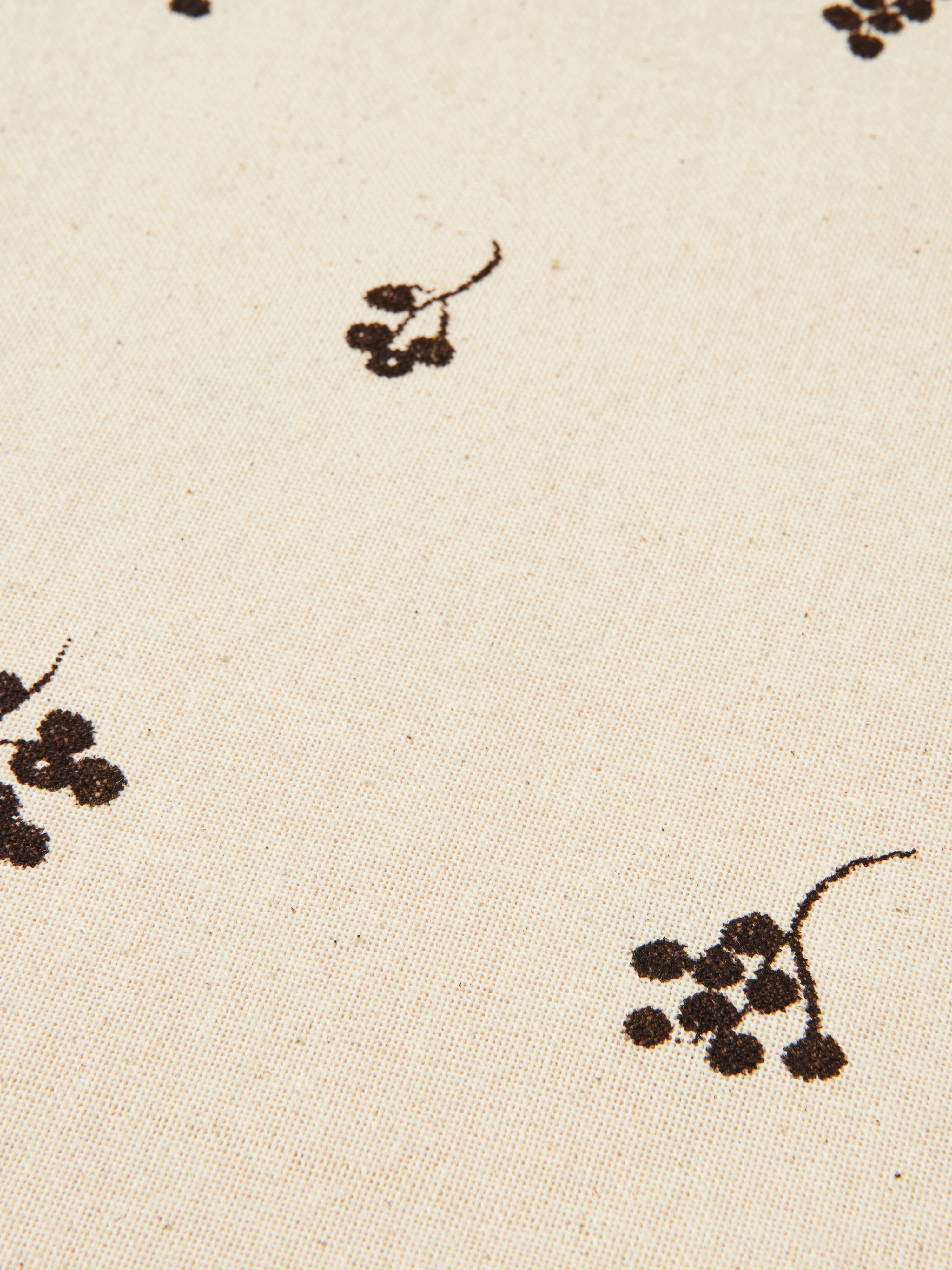Tablecloth Baies is a blend of elegance and artisanal craftsmanship. Made from 100% organic cotton, it delights with a delicate print featuring hand-drawn berry branches, giving it a subtle and sophisticated character. Its calm, muted design creates an elegant atmosphere, perfect for both everyday meals and festive gatherings with loved ones.