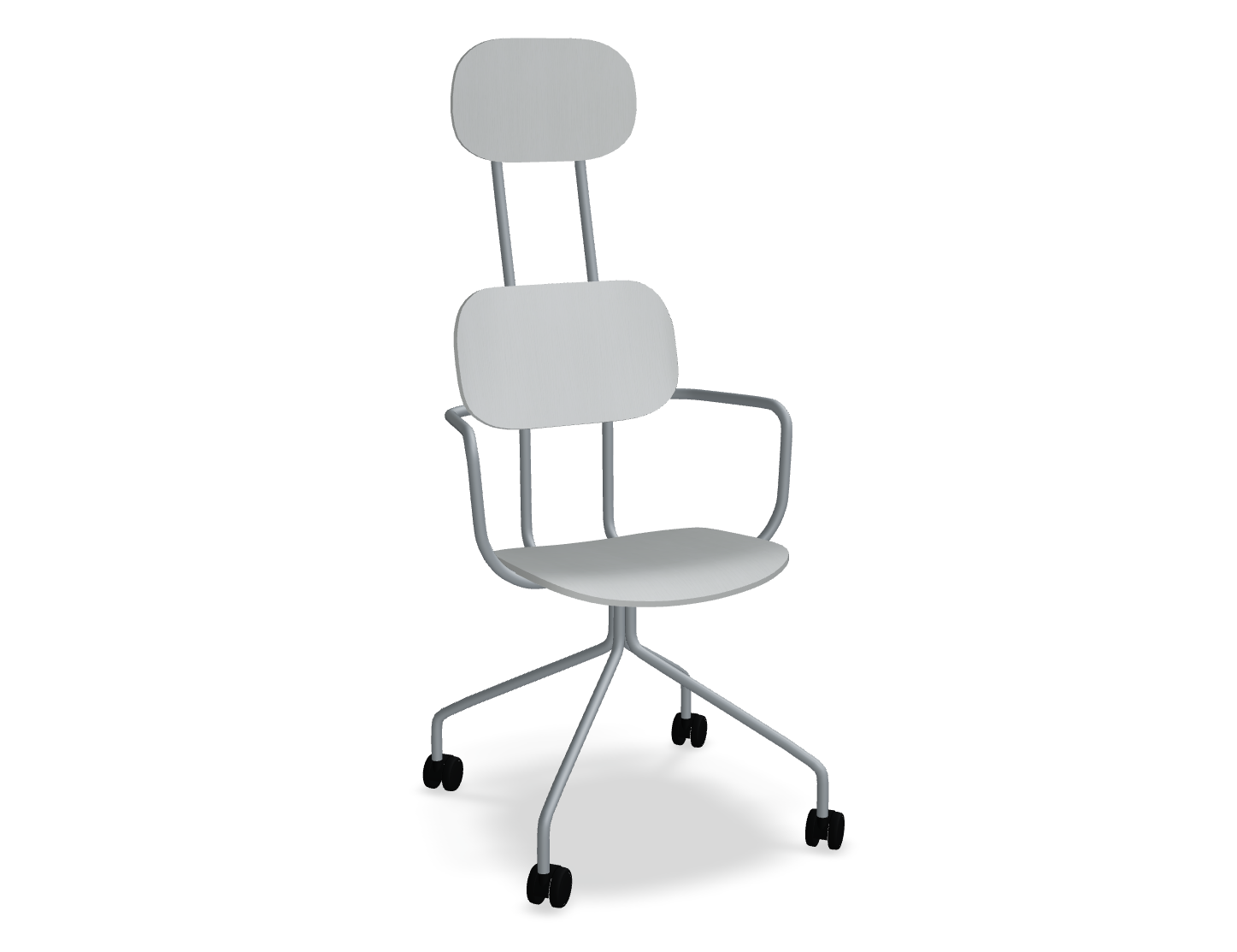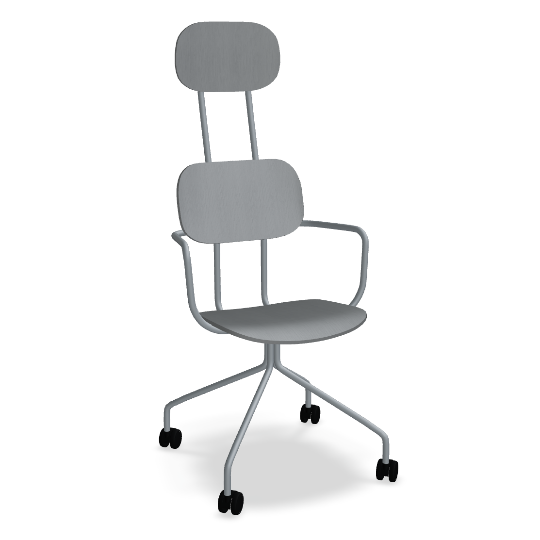 Office chair with headrest New School, designed by Studio Form US with Love, attracts attention with a modern form of double support. This version provides support for the whole back, and the headrest additionally increases the comfort of use. Thanks to the wheels and armrests, the New School chair is not only comfortable, but also functional, allowing for freedom of movement and a comfortable position, even during a longer sitting.