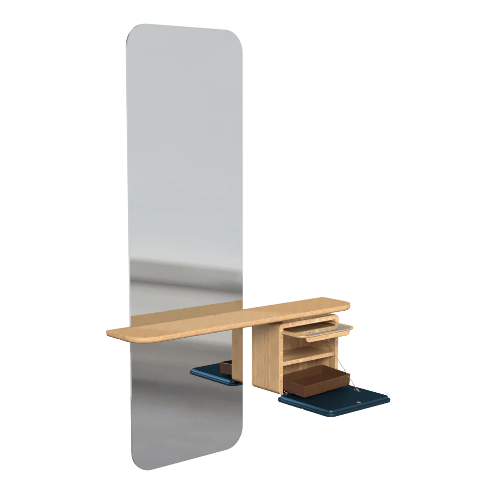 One More Look is clear and spacious mirror with a minimalist Scandinavian character, which has many additional functions that fulfill the daily needs of urban life. Increasing the minimum space, One More Look is ideal for corridors of any size, but it will also work perfectly in bedrooms, hotels and office corridors.