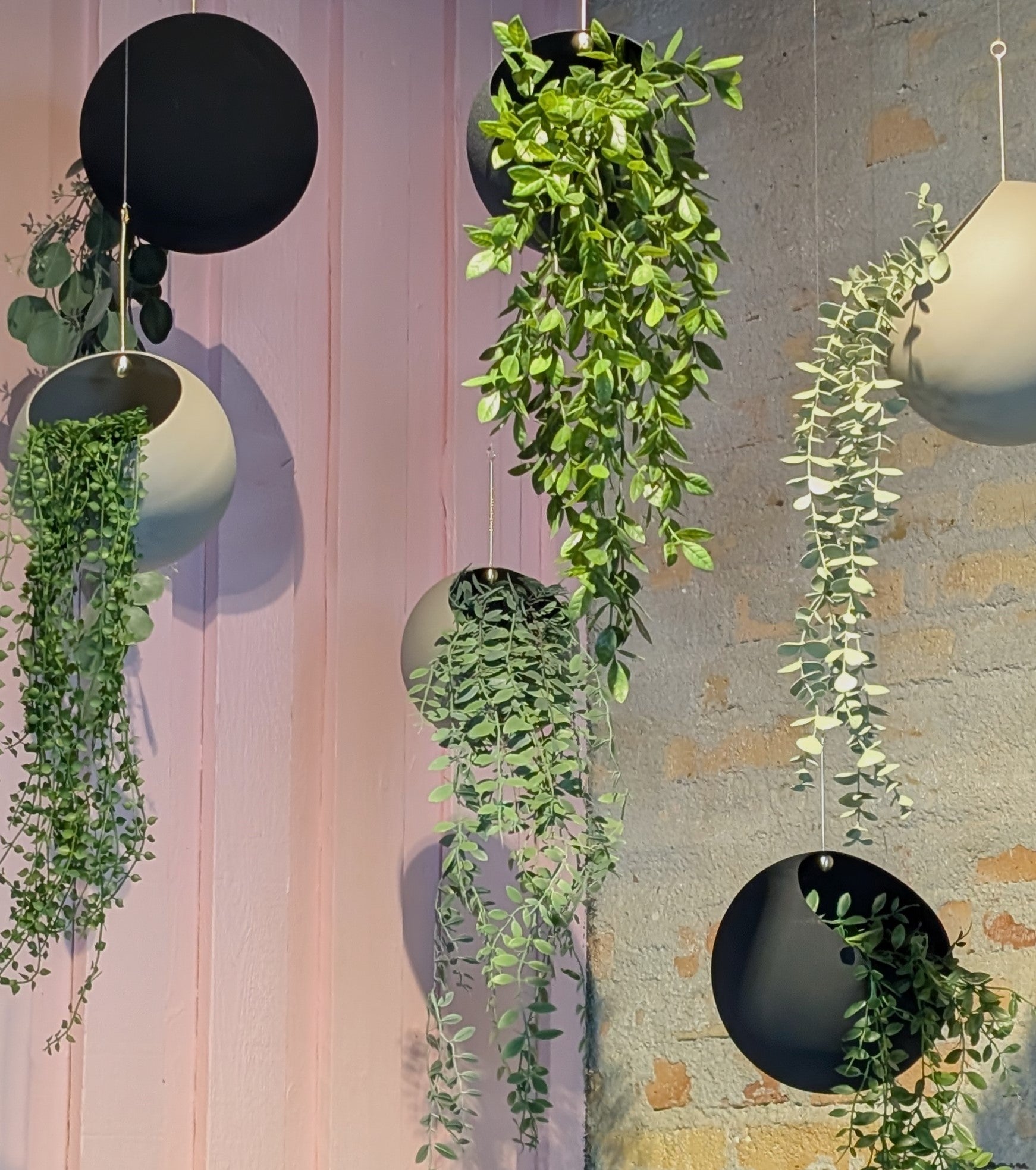Thanks to its lightweight form and subtle design, the Globe looks particularly stunning when suspended on a fishing line, creating the impression of a composition floating in the air. Available in various colors and sizes, it allows for the creation of personalized, green arrangements tailored to any space.