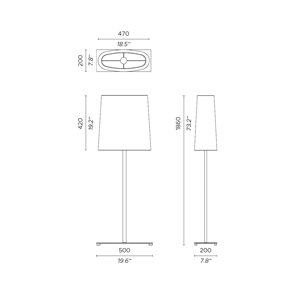 Ovale is a floor lamp characterized by a geometric shape, with rectangles and ovals that complement each other.The shade can be made from very pleasant-to-the-touch fabrics: with a marble effect or white cotton, for a couture effect.