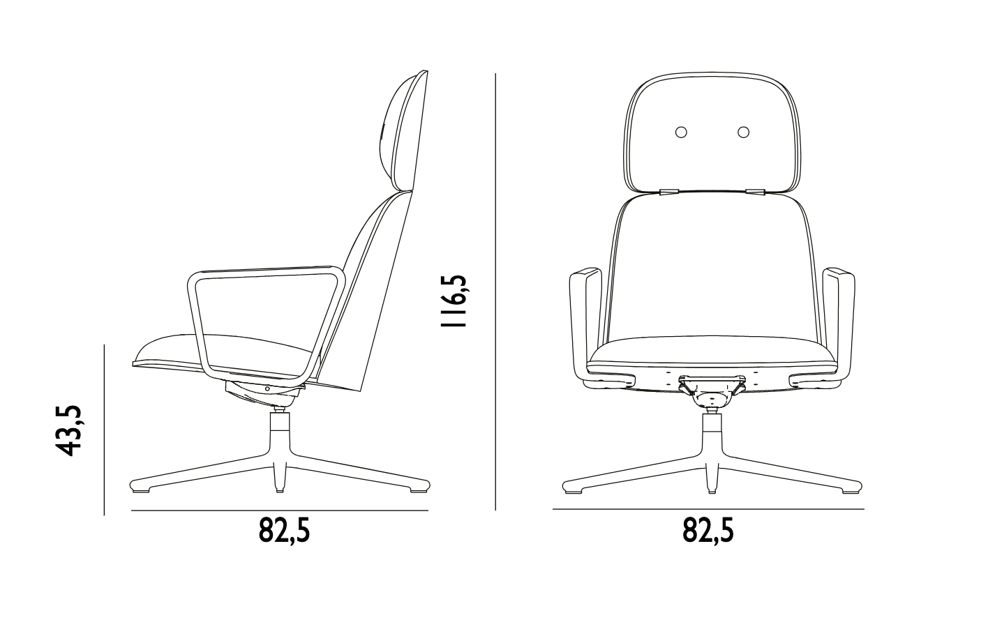 PAD HIGH HIGH BLACK Armchair with an aluminum base