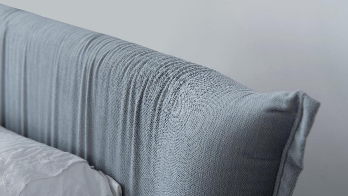 Modern bed Upholstered Piero is distinguished by an unusual form. His wide headboard surrounds the mattress, providing a pleasant sense of coziness. Soft upholstery and pleasant to the touch fabric with the effect of natural creases intensify this impression. The solid base of the bed consists of a wooden frame and legs made of solid beech wood, which guarantees durability and stability.