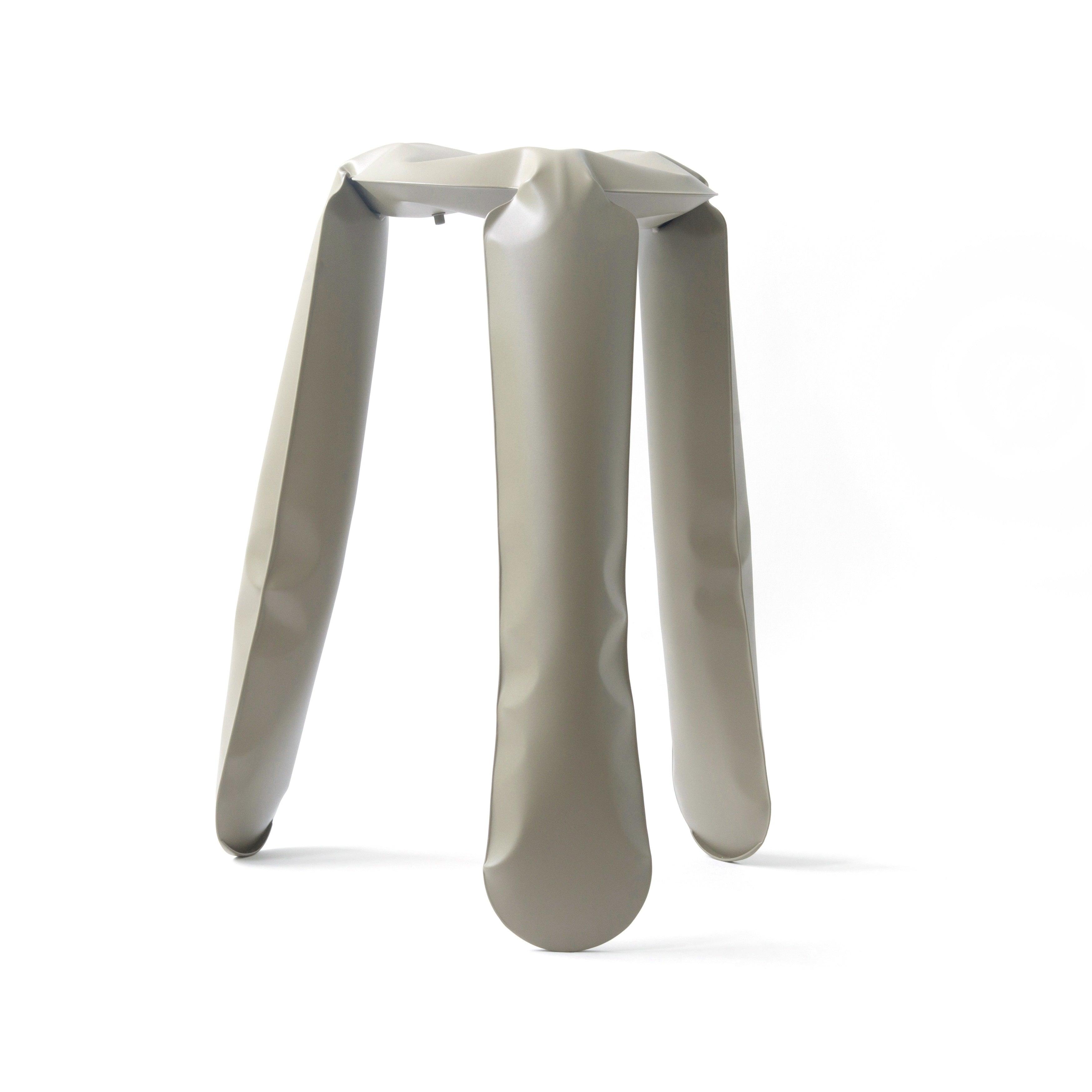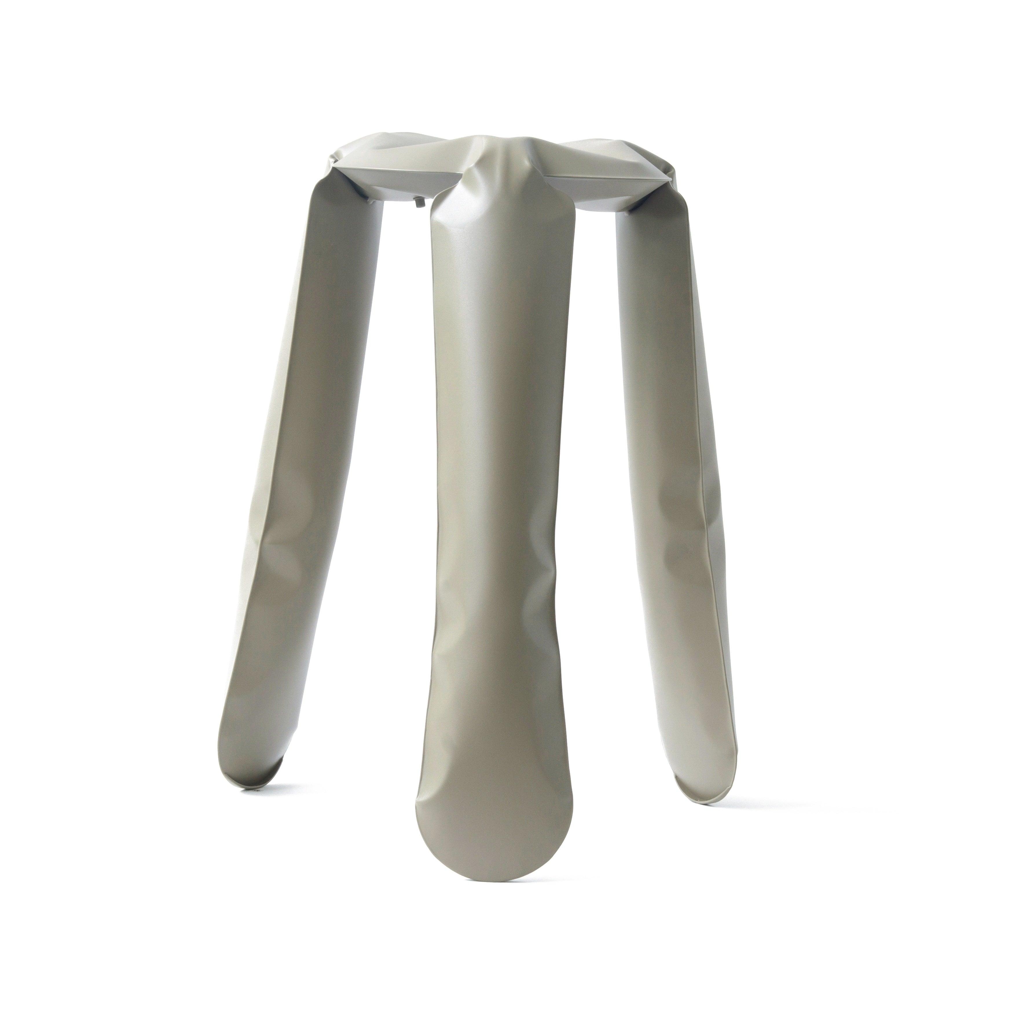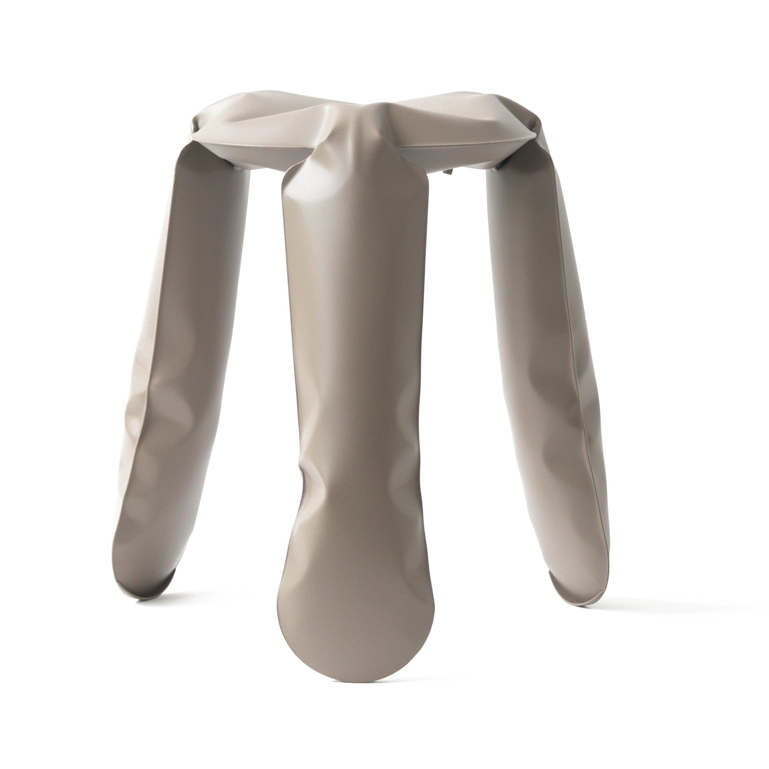 Plopp Stool in beige is a true hallmark of Zieta Studio and simultaneously a symbol of Oskar Zięta's research on the properties and possibilities of metal. This extraordinary stool, also known as the "Polish folk object inflated with air," is a perfect example of how artistic aspects of design can be revealed through highly advanced engineering forms.