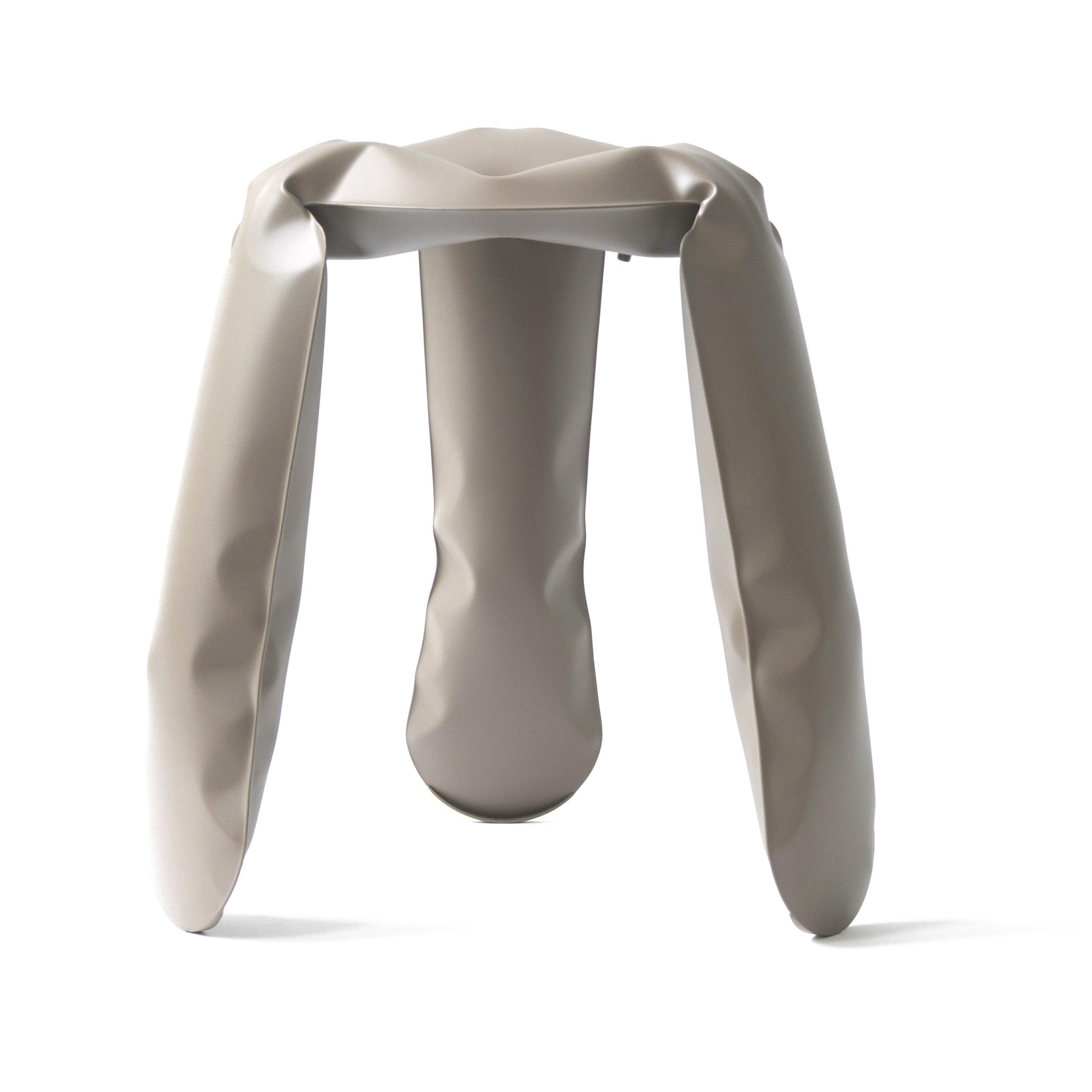 Plopp is not just a piece of furniture, but also a manifestation of FiDU technology (Freie Innendruck Umformung) and the process of "controlled loss of control." The stool was created from two ultra-thin sheets of steel that are welded together around the edges and then inflated under high pressure. This process transforms the flat 2.5D shape into a three-dimensional object, giving the stool extraordinary shapes and a dynamic appearance.